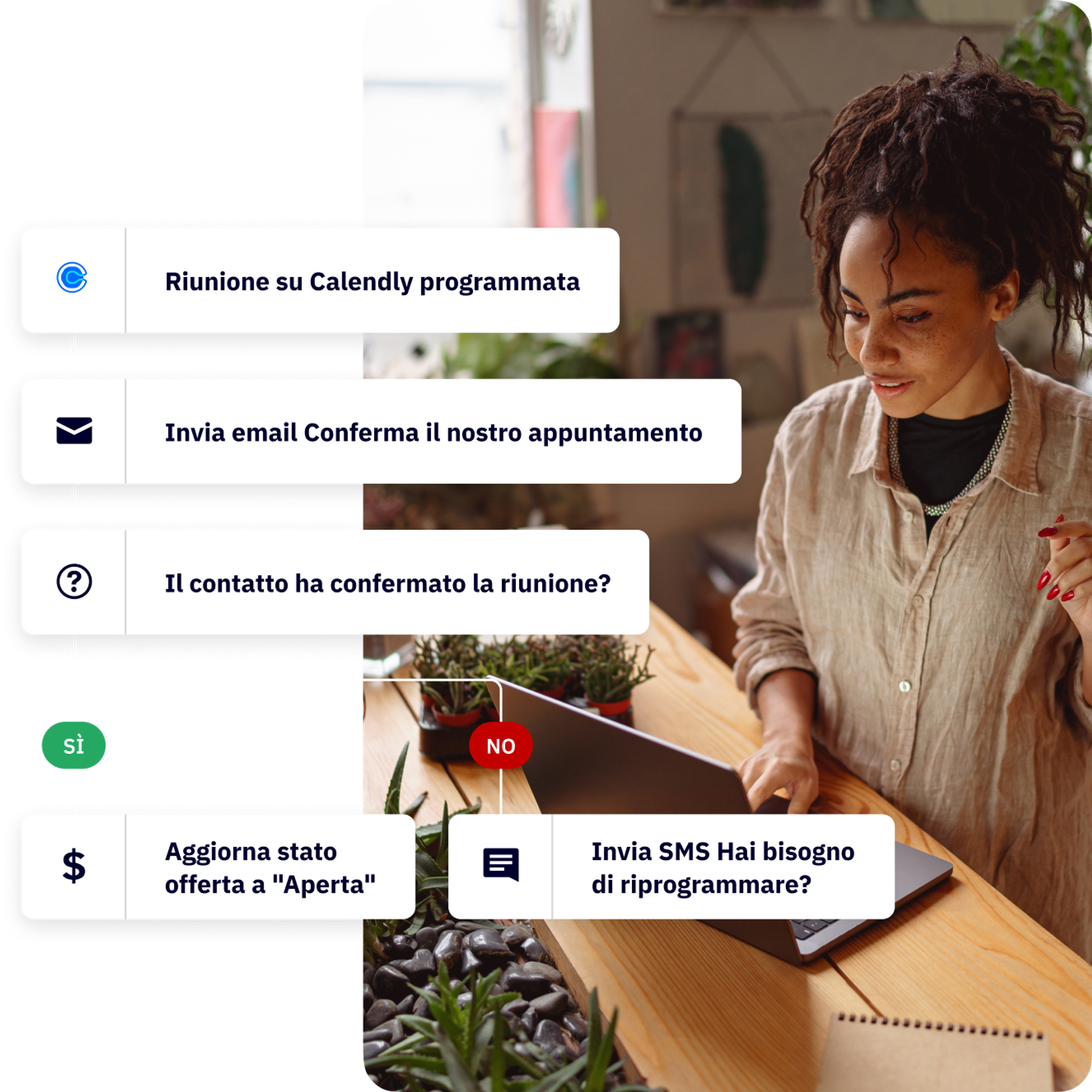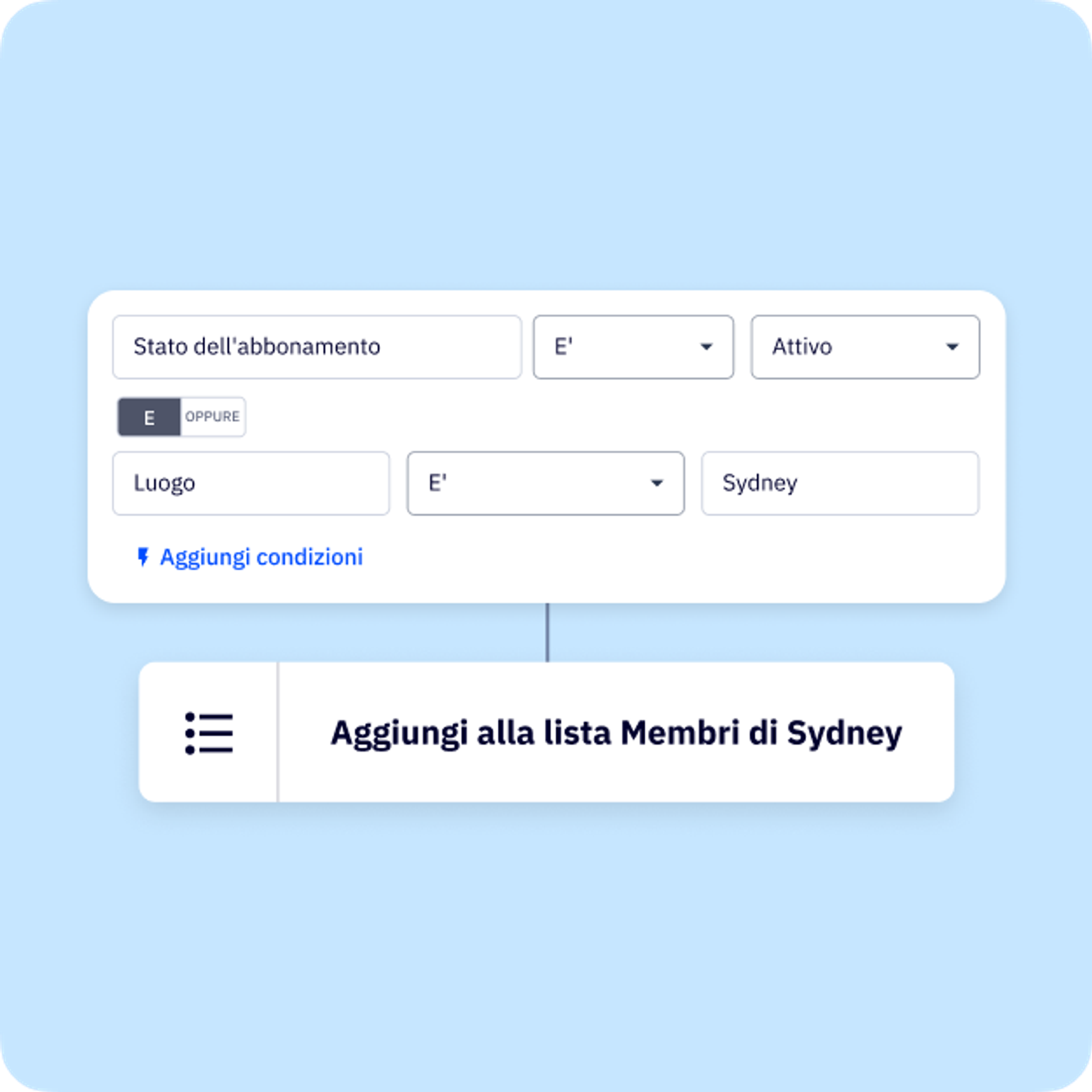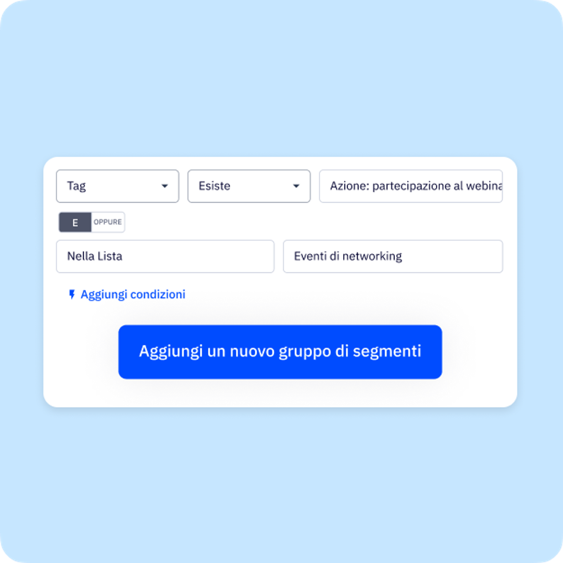 Salta il lavoro di back-end e passa direttamente a ciò che conta: campagne personalizzate che catturano l'attenzione e producono risultati. Individua i contatti pronti all'acquisto e quelli pronti a vivere esperienze più significative.