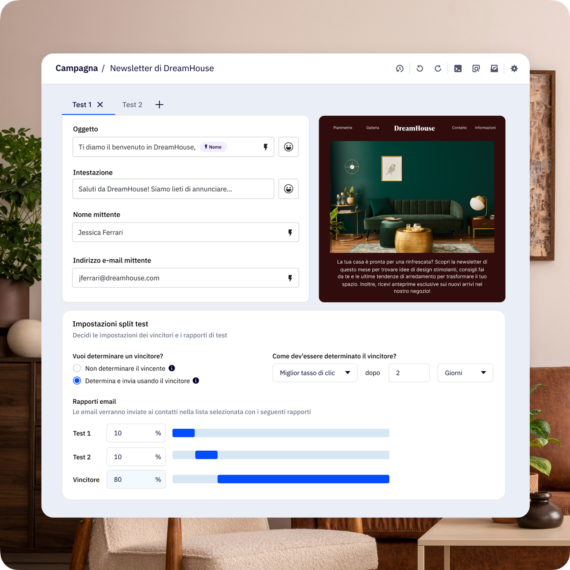 Non limitarti a effettuare test A/B sulle tue campagne: esegui test A/B/C/D/E. Utilizza i nostri split test avanzati per confrontare fino a cinque email alla volta e trova la formula vincente.