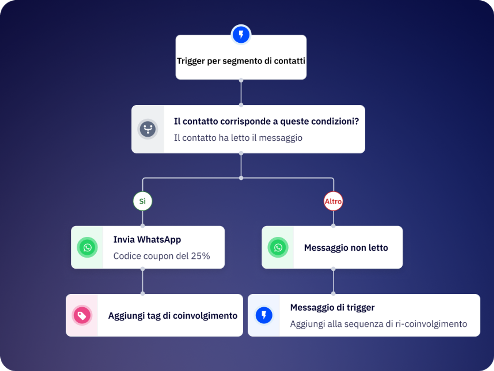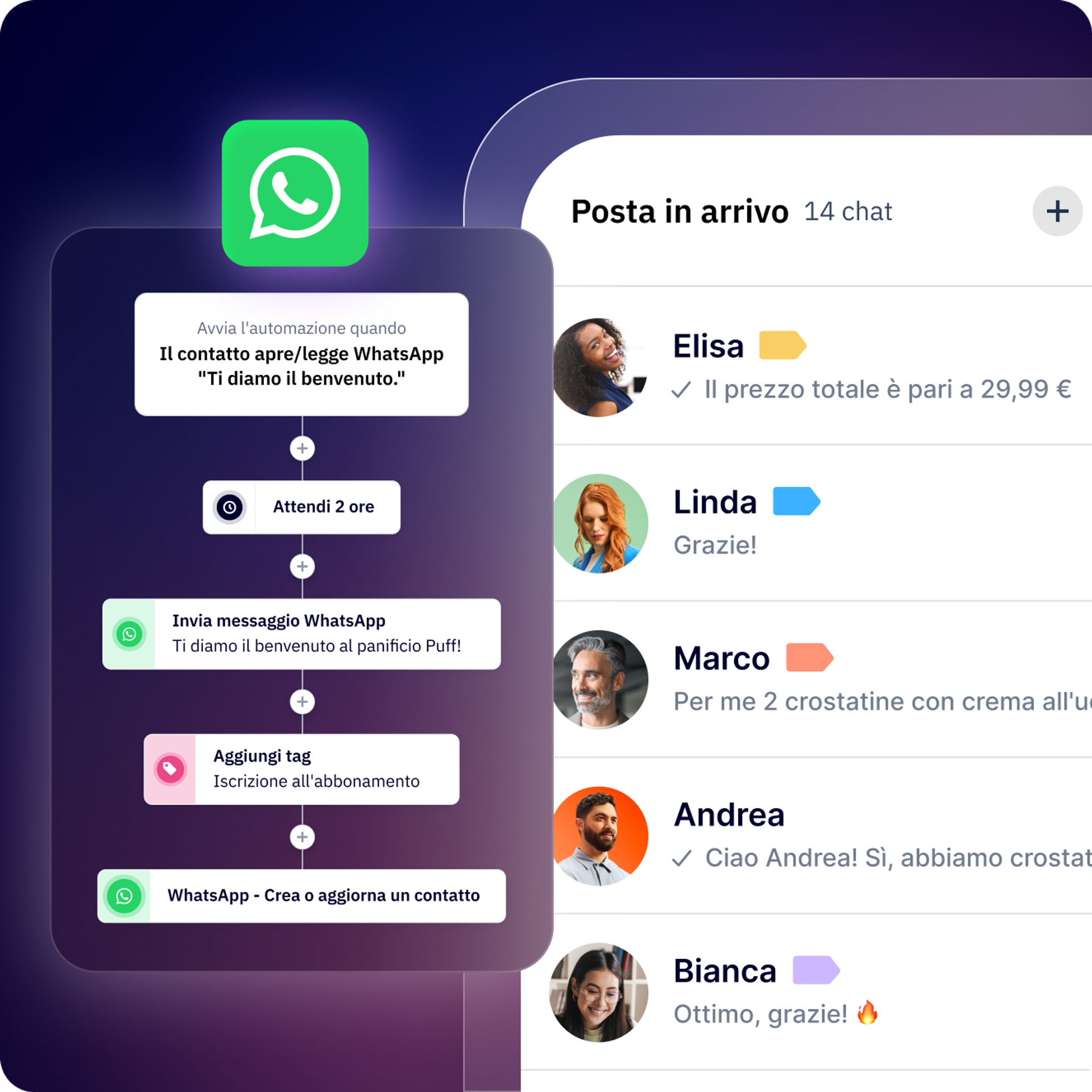 Crea le migliori esperienze automatizzate per i tuoi clienti su WhatsApp per conquistarli.