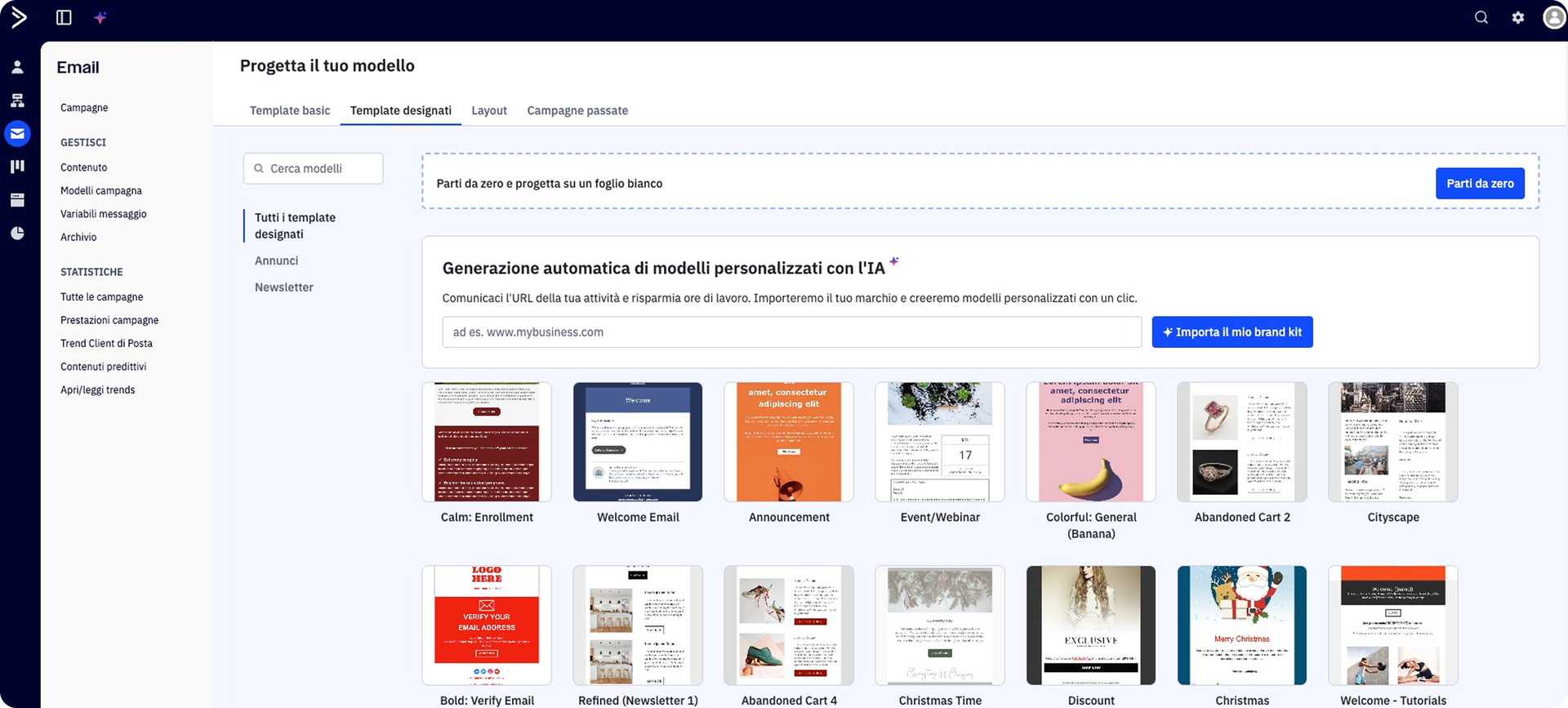 I modelli email sono stati la base del marketing digitale per decenni. Ma ecco cosa sta cambiando: invece di scegliere da una libreria di modelli predefiniti, ora l'IA crea design email personalizzati che si adattano in tempo reale al tuo brand, al tuo pubblico e ai tuoi obiettivi.