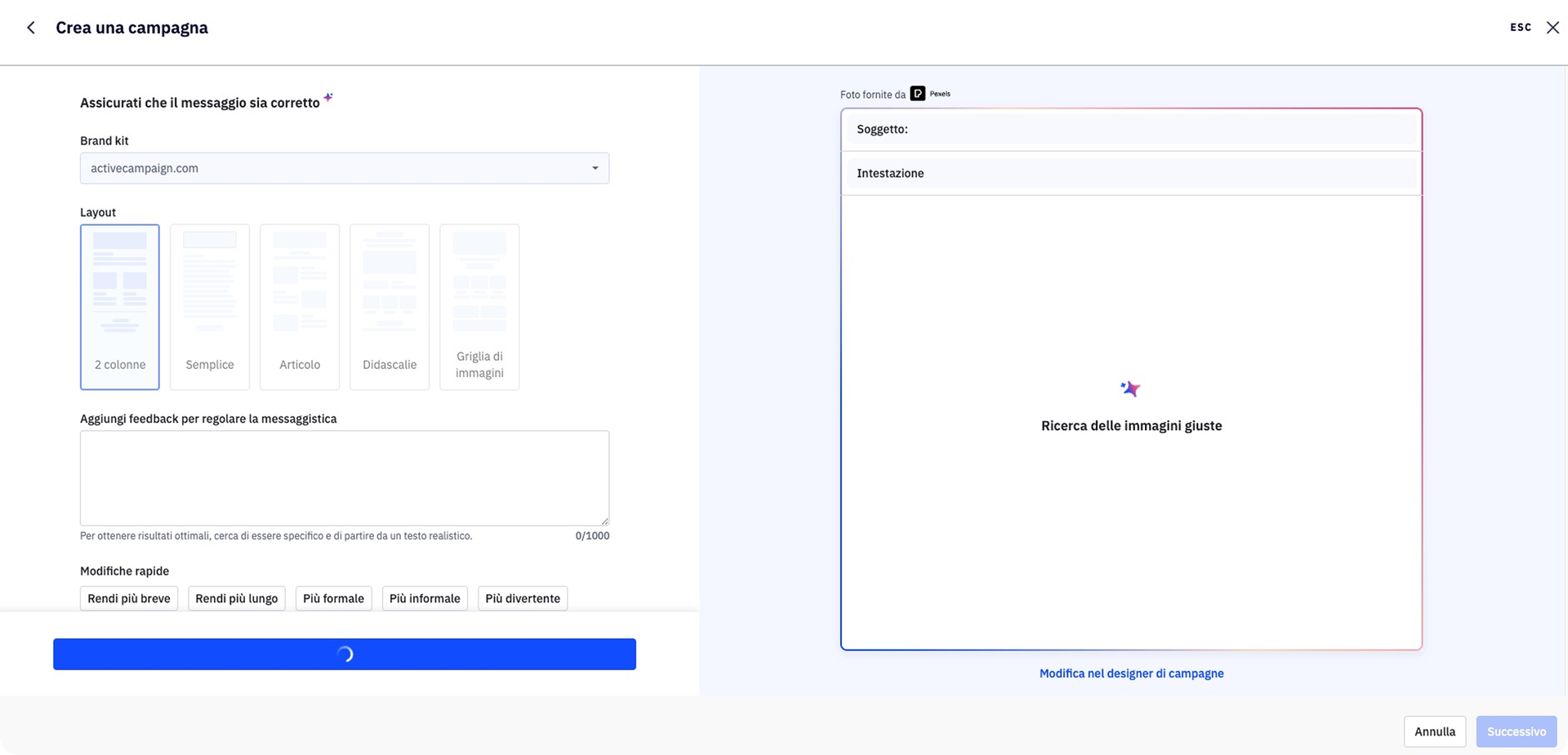 La buona notizia è che, mentre i tuoi concorrenti stanno ancora sfogliando quei cataloghi digitali, ActiveCampaign può creare campagne su misura per il tuo brand e il tuo pubblico in pochi minuti, senza bisogno di modelli predefiniti.