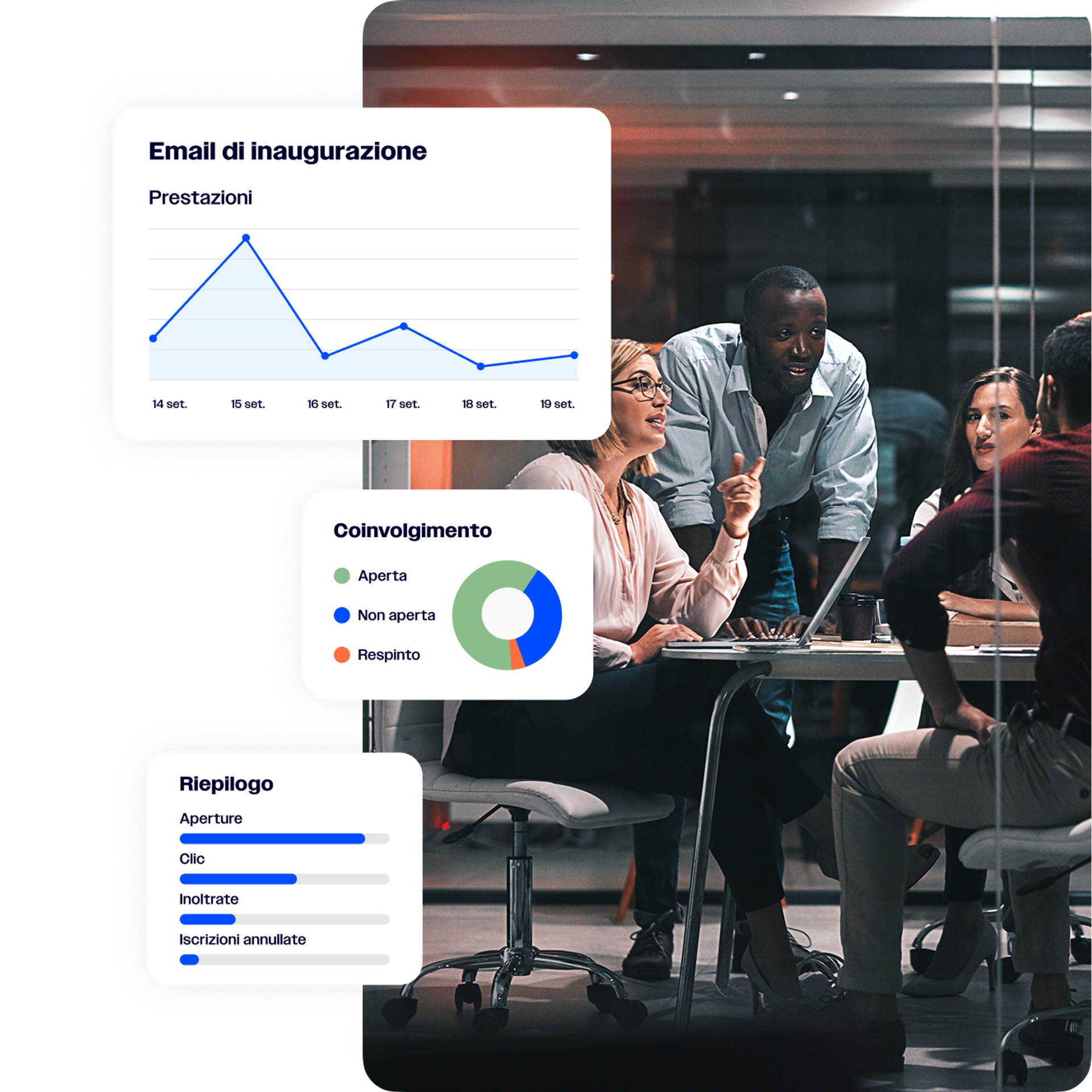 Sfrutta gli approfondimenti intelligenti per mostrare chiaramente i tuoi dati e i risultati delle campagne in pochi minuti con le nostre opzioni di reporting facili da usare.