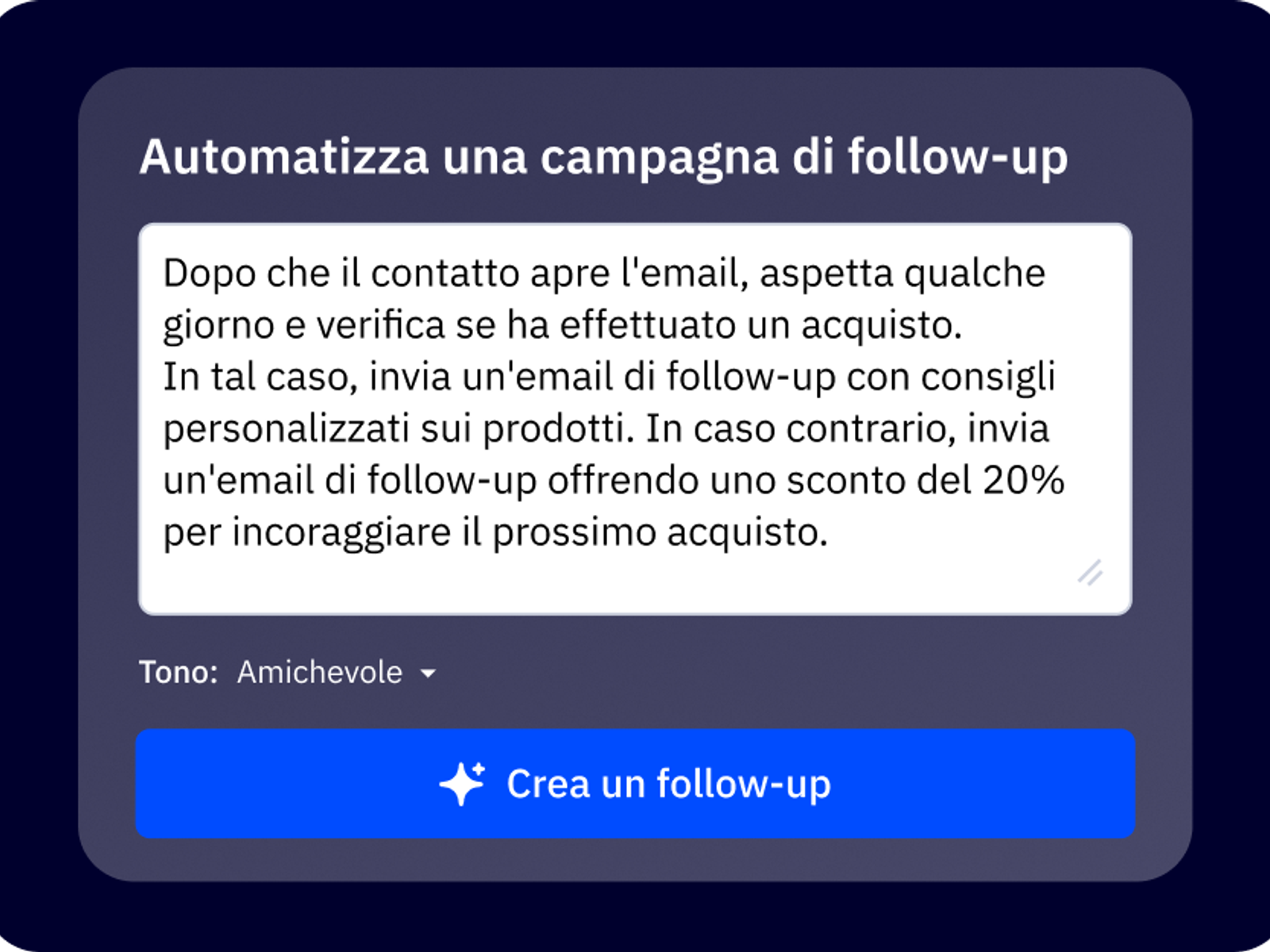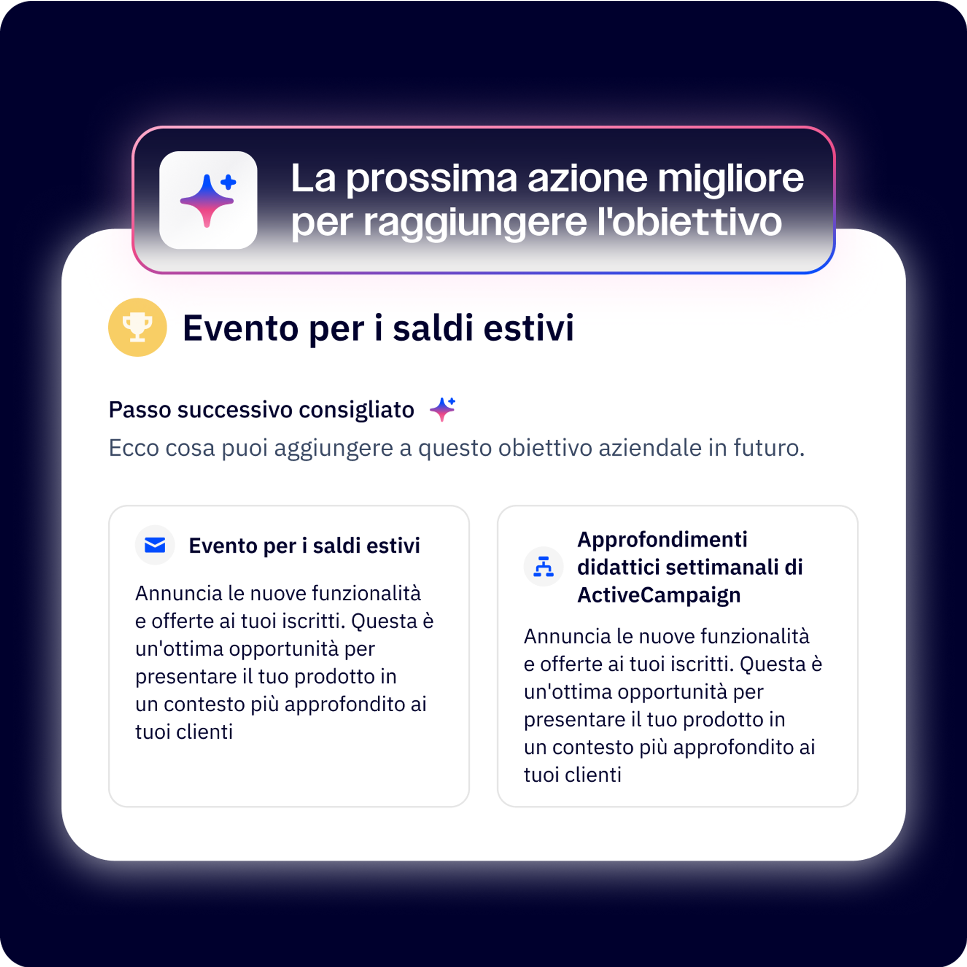 Ottieni idee di automazione basate sulla tua attività, sul pubblico e sugli obiettivi.