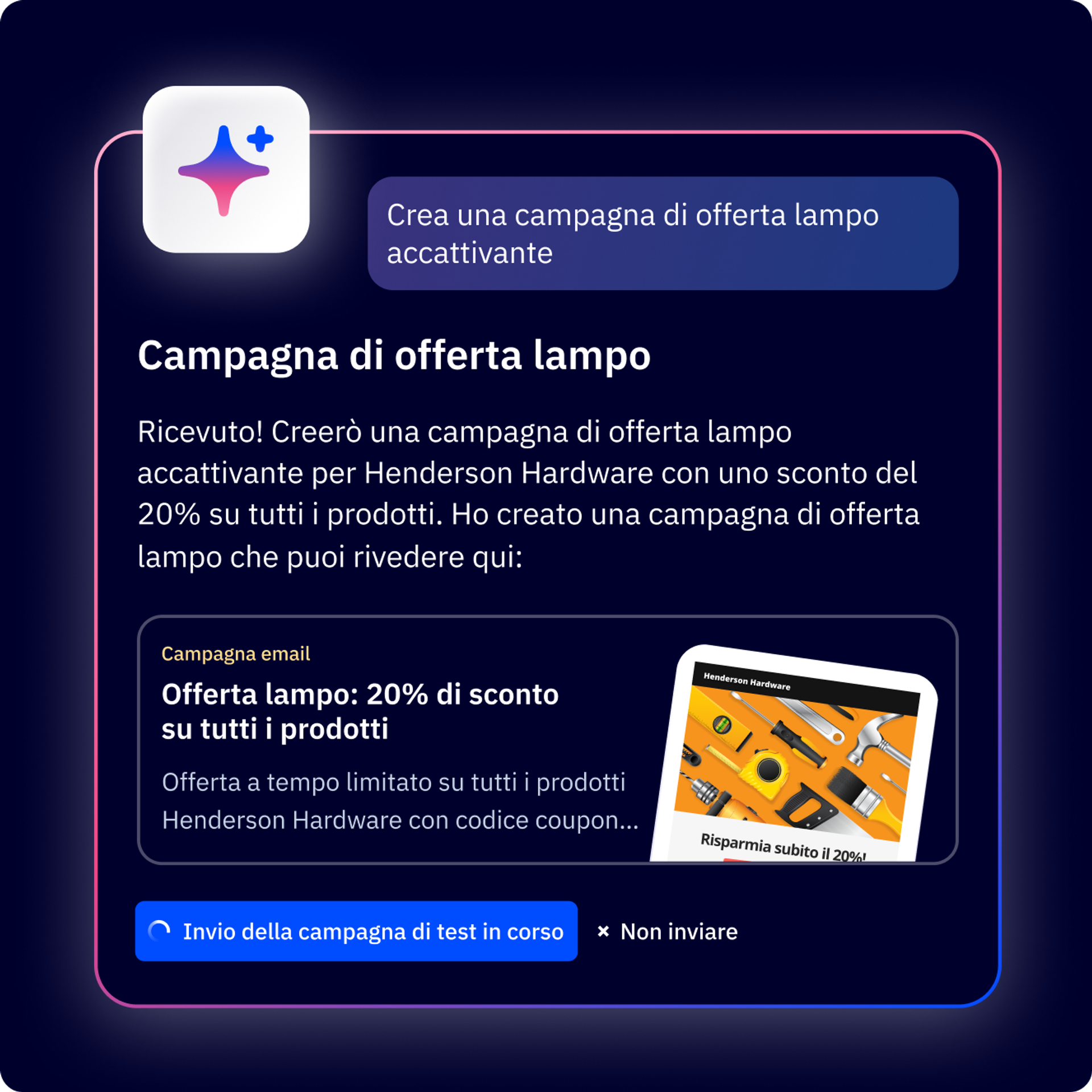 Genera una campagna email ottimizzata da un semplice prompt.