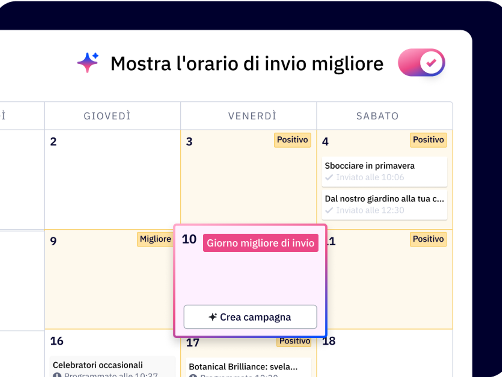 Invia messaggi nel momento in cui ogni contatto è più propenso a interagire, in base alle sue azioni e preferenze.