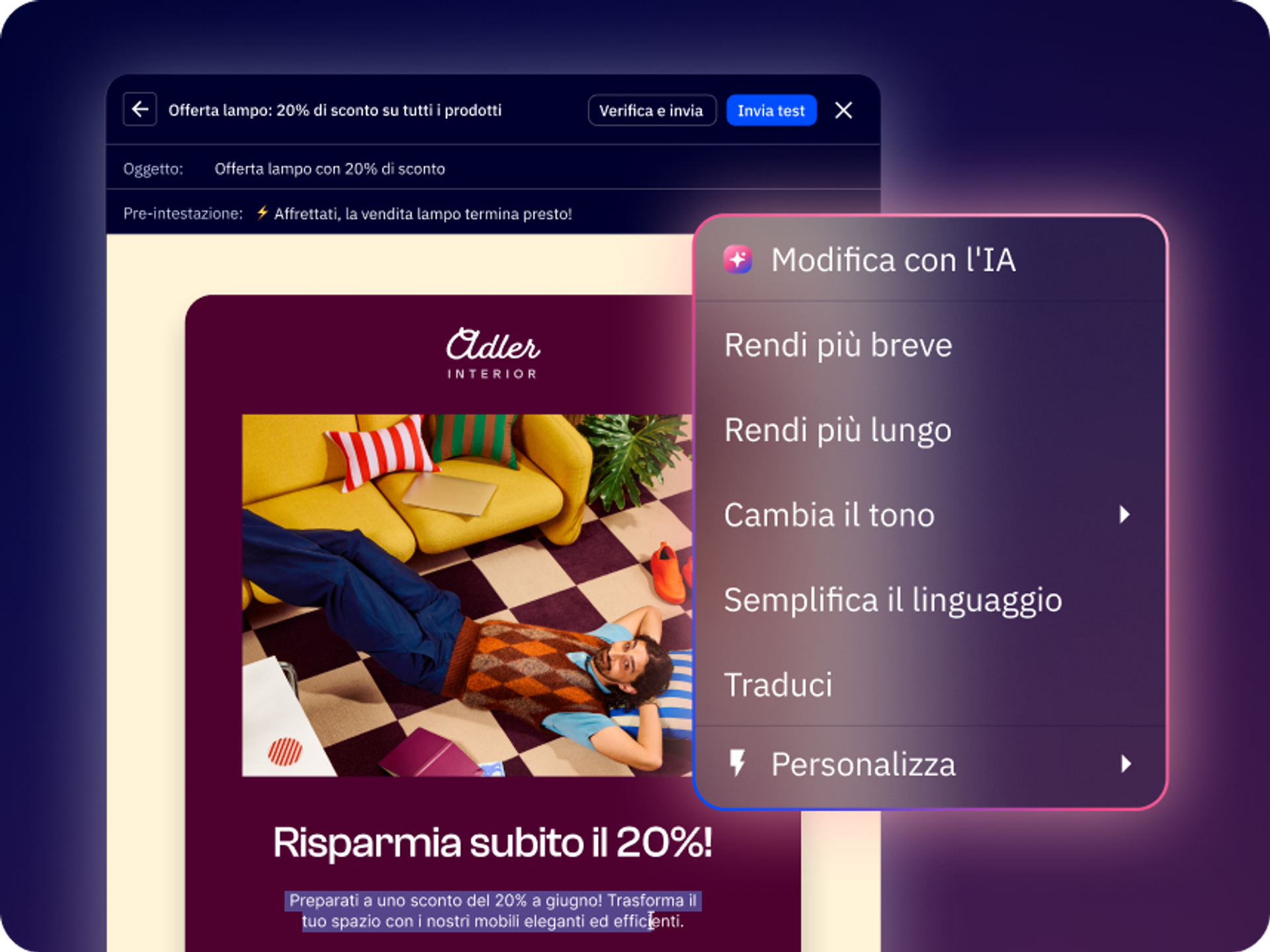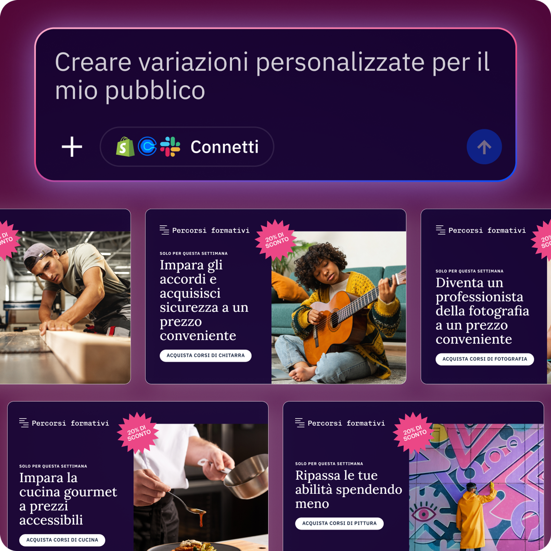 Adatta automaticamente contenuti e messaggi per ogni cliente, per aumentare il coinvolgimento, favorire le conversioni e far crescere i tuoi ricavi.