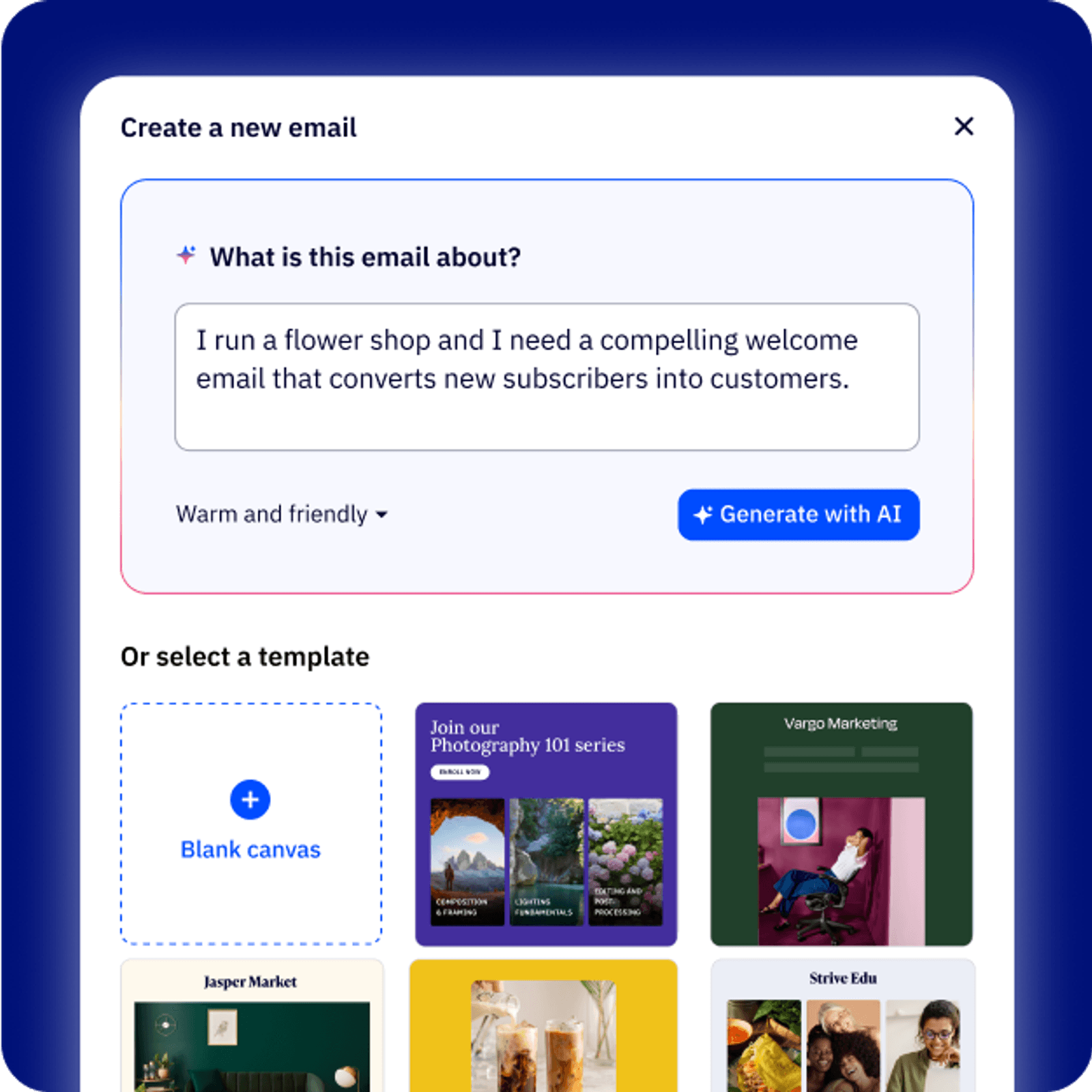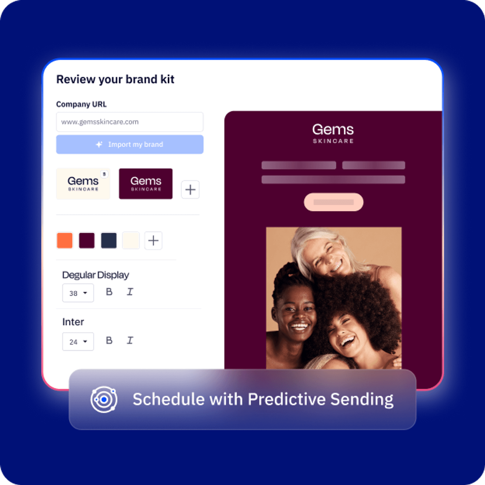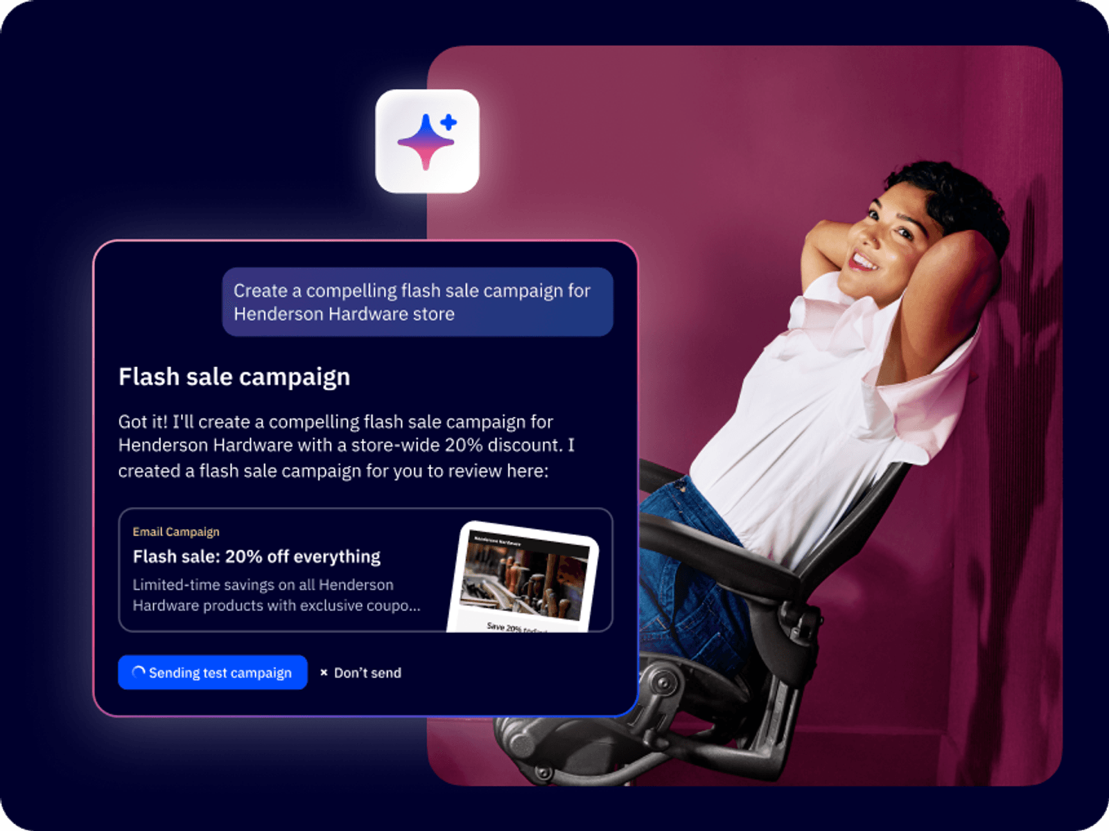 Use AI to create email copy, images, and campaigns in seconds, and reach people at the best time with predictive sending.