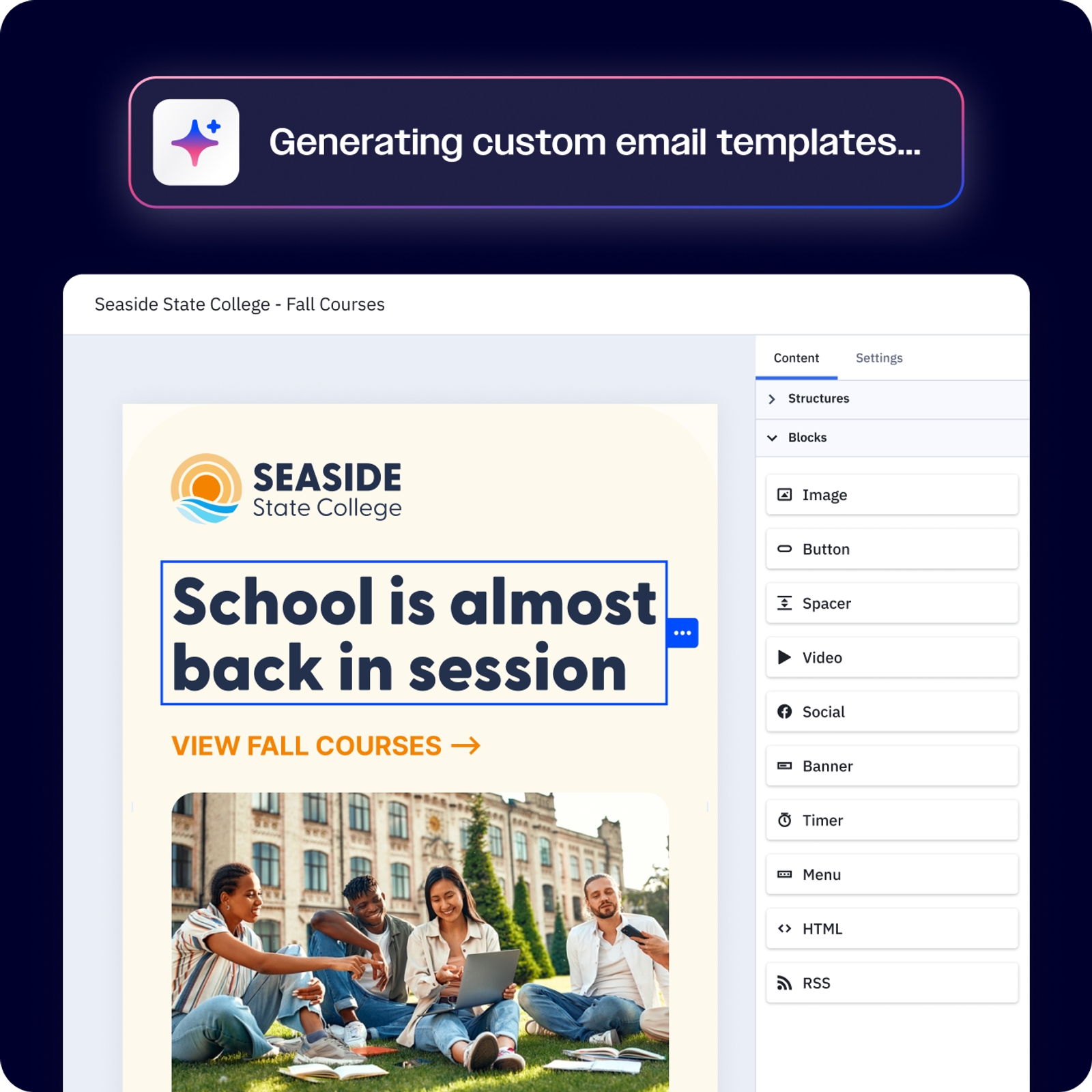 Want to fine-tune your look? Our Email Designer gives you complete control to customize any AI-generated template.