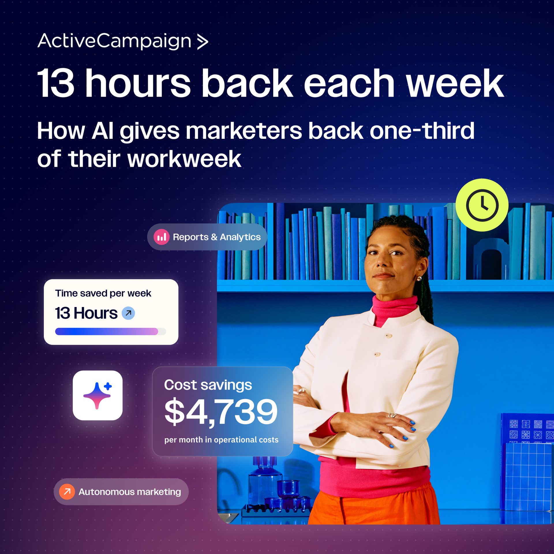 The survey of 1,000 American marketers, agency marketers, and small business owners was commissioned by ActiveCampaign and conducted by Talker Research between May 21 and June 12, 2025. Read the full 13 Hours Back report for the complete data analysis and find out where you stand in AI maturity by taking the AI Marketing Maturity Quiz.