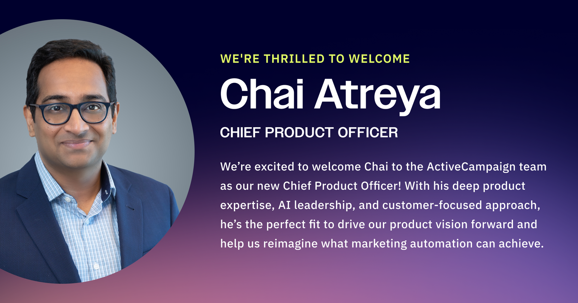 ActiveCampaign, a leading marketing automation platform, today announced the appointment of Chai Atreya as its new Chief Product Officer. Atreya will lead the company’s product strategy and vision during a pivotal phase of rapid growth and innovation, working closely with teams across the business to scale AI-driven experiences and build on the company’s momentum as a category leader.