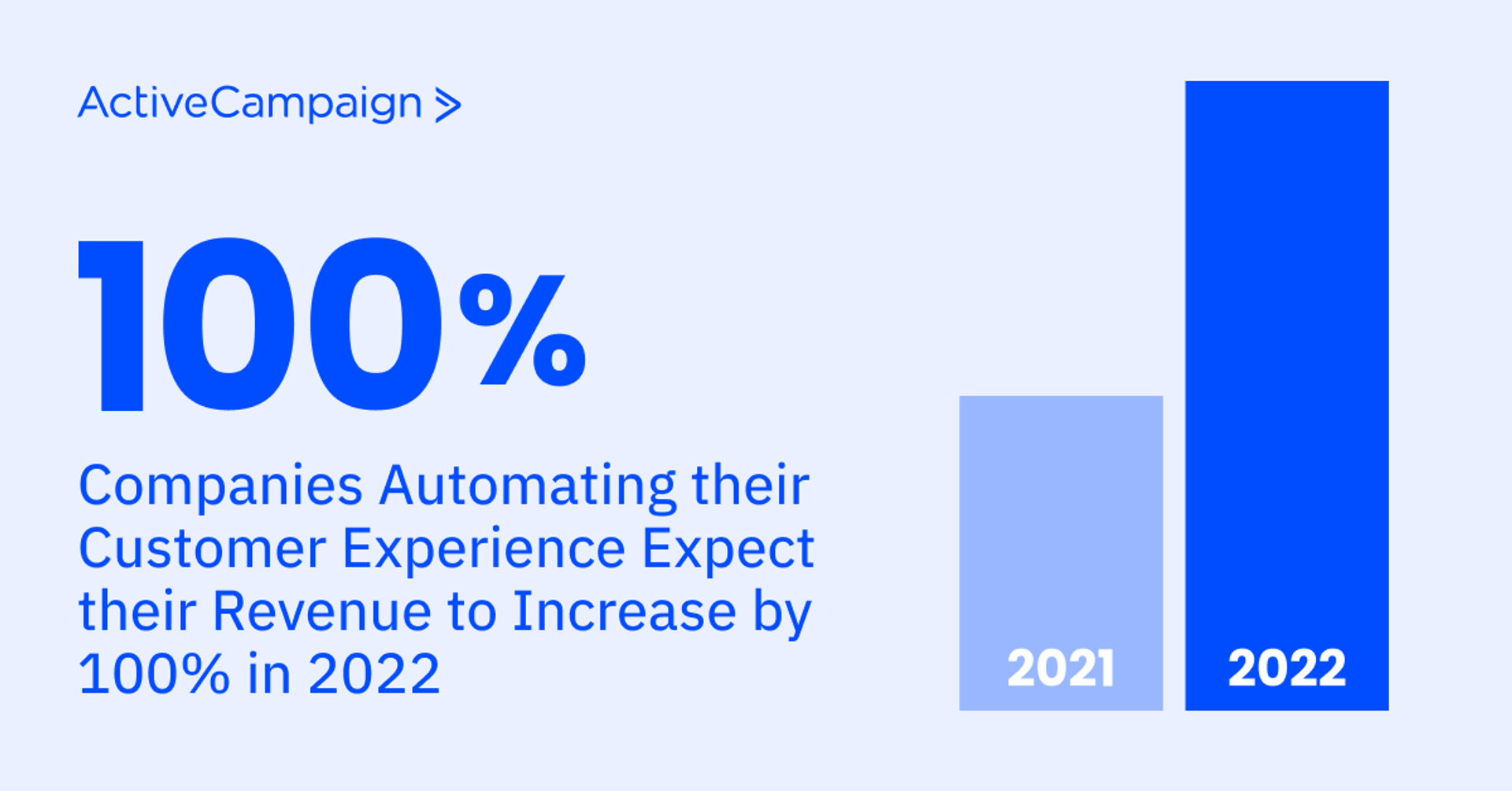 In the 2022 Customer Experience Automation Impact Study, ActiveCampaign, the leader in Customer Experience Automation (CXA), found that businesses using CXA expect to double their revenue in 2022 (growing by 100% over the next year), compared to the typical 3.5% growth seen from those using legacy email marketing, marketing automation and CRM tools. This growth is fueled by businesses more than doubling their new leads year over year, with a reported 110% increase in new leads and a 94% increase in conversions compared to the previous year. While companies who implement CXA are able to generate nearly half of their revenue from current customers, higher than the 25% industry standard, it’s clear that delivering exceptional experiences for new customers has never been more crucial.