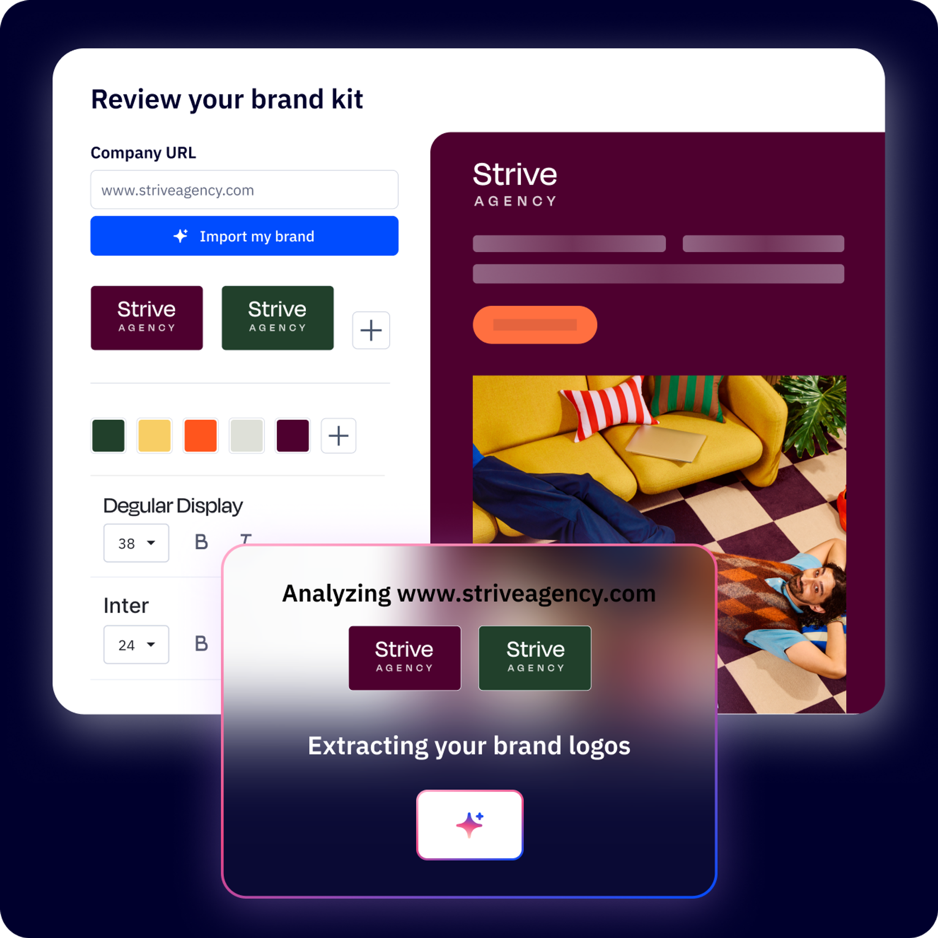 Skip the formatting and get right to sending. Import your brand from your web URL.