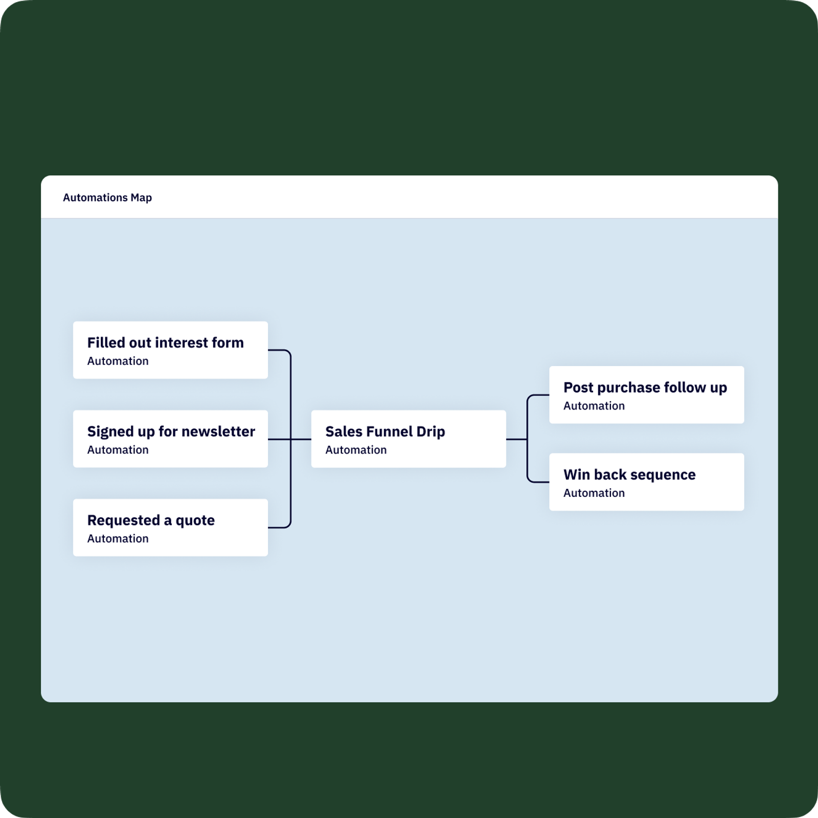We make it easy. Just visually map out the experience you want your customers to have. Start with a trigger or desired action, add your touchpoints, and schedule when you want it all to happen.