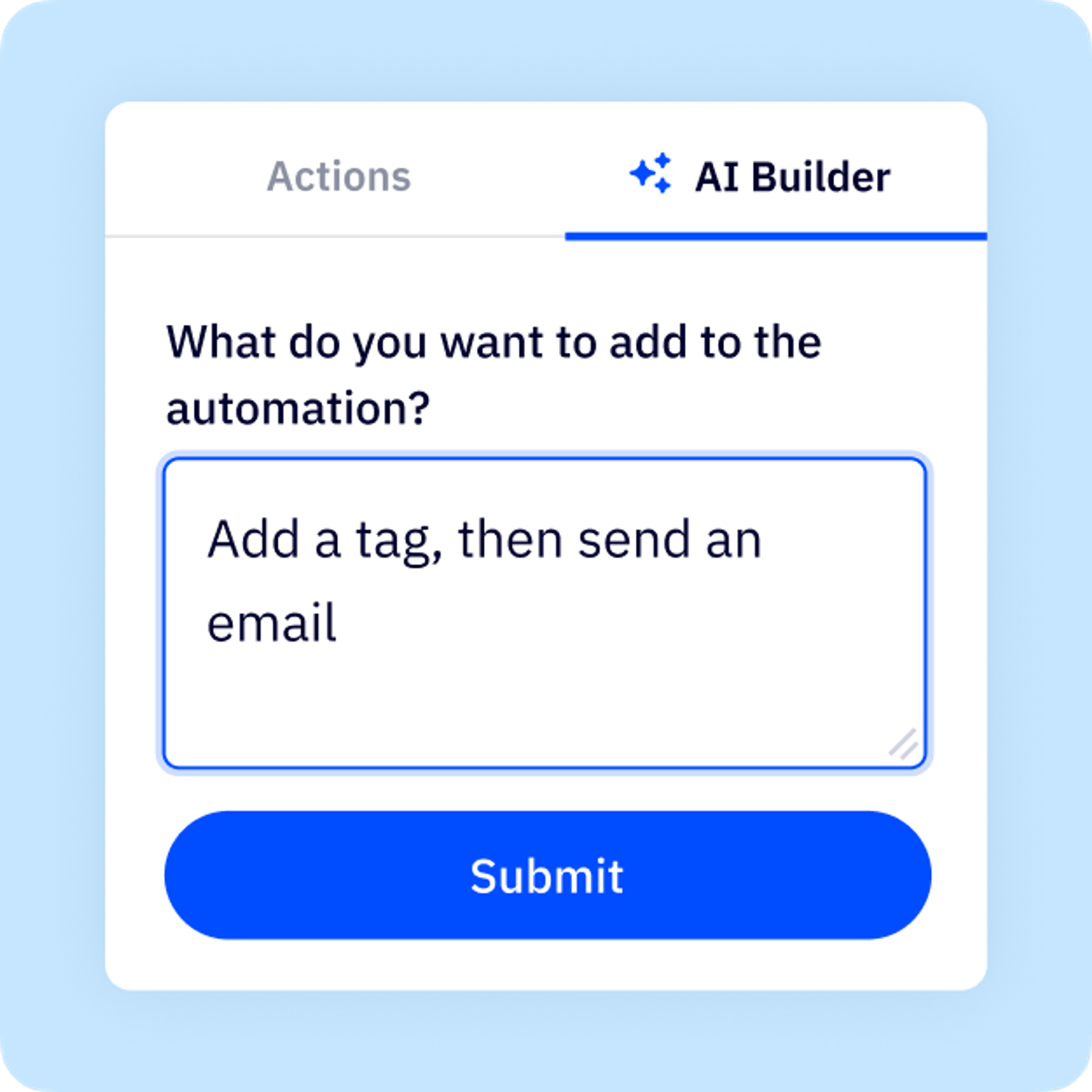 Automate more, faster. Our automation builder combines powerful and flexible actions, conversational AI, and an intuitive drag-and-drop interface.