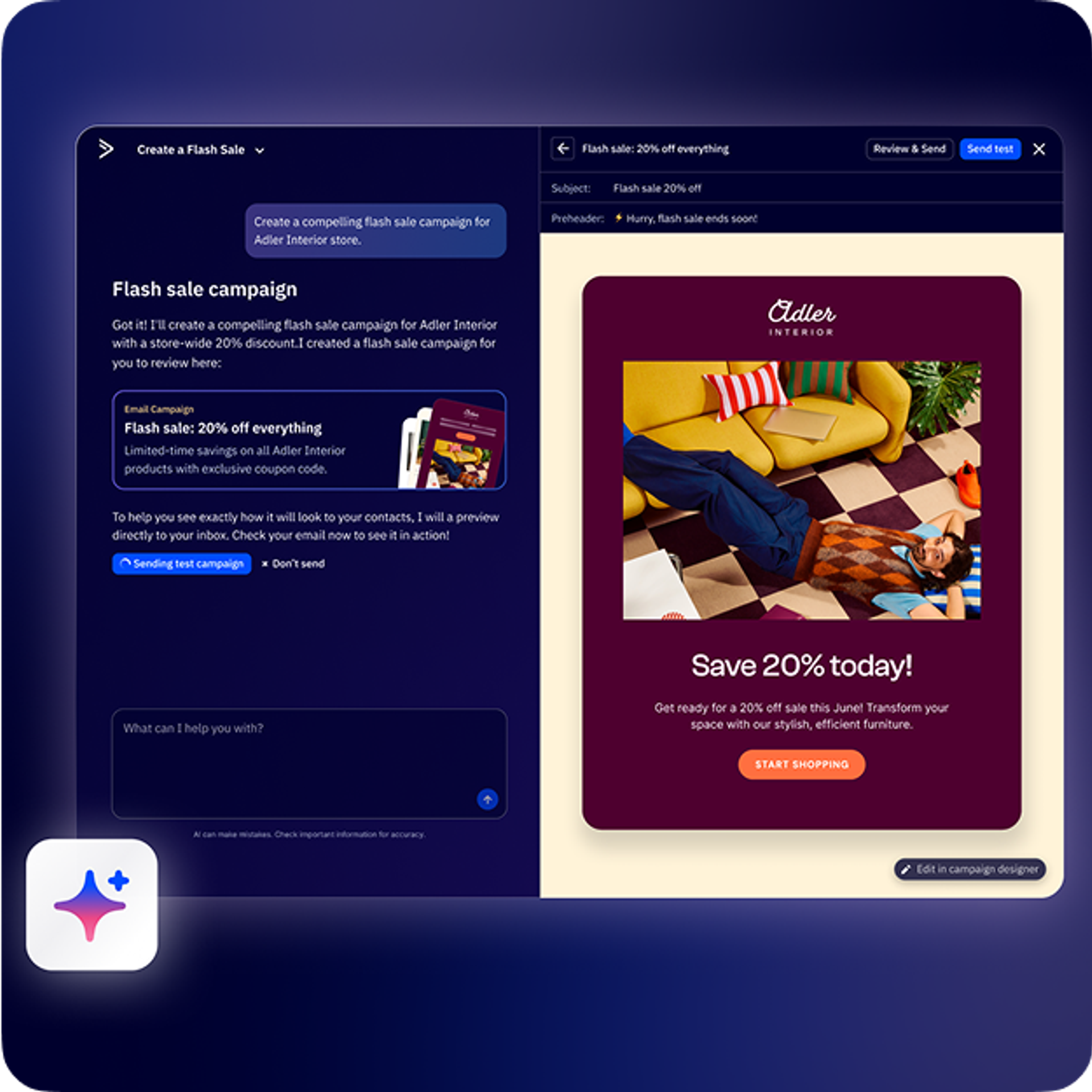 Build entire marketing campaigns from simple, everyday-language prompts.