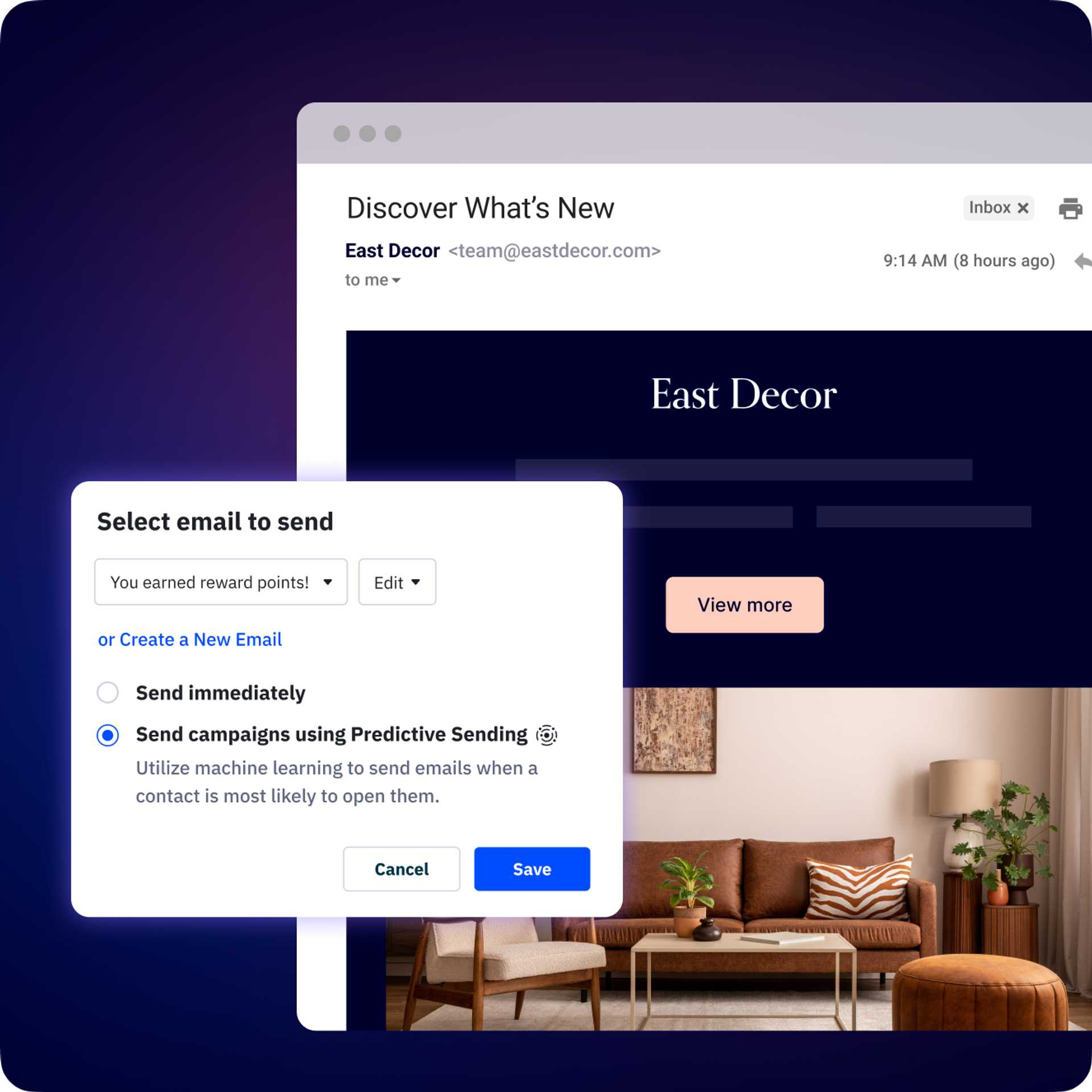 Don’t guess the right time to send — know for certain. Predictive sending takes the guesswork out of your email strategy, so you always know you’re sending at the right time.