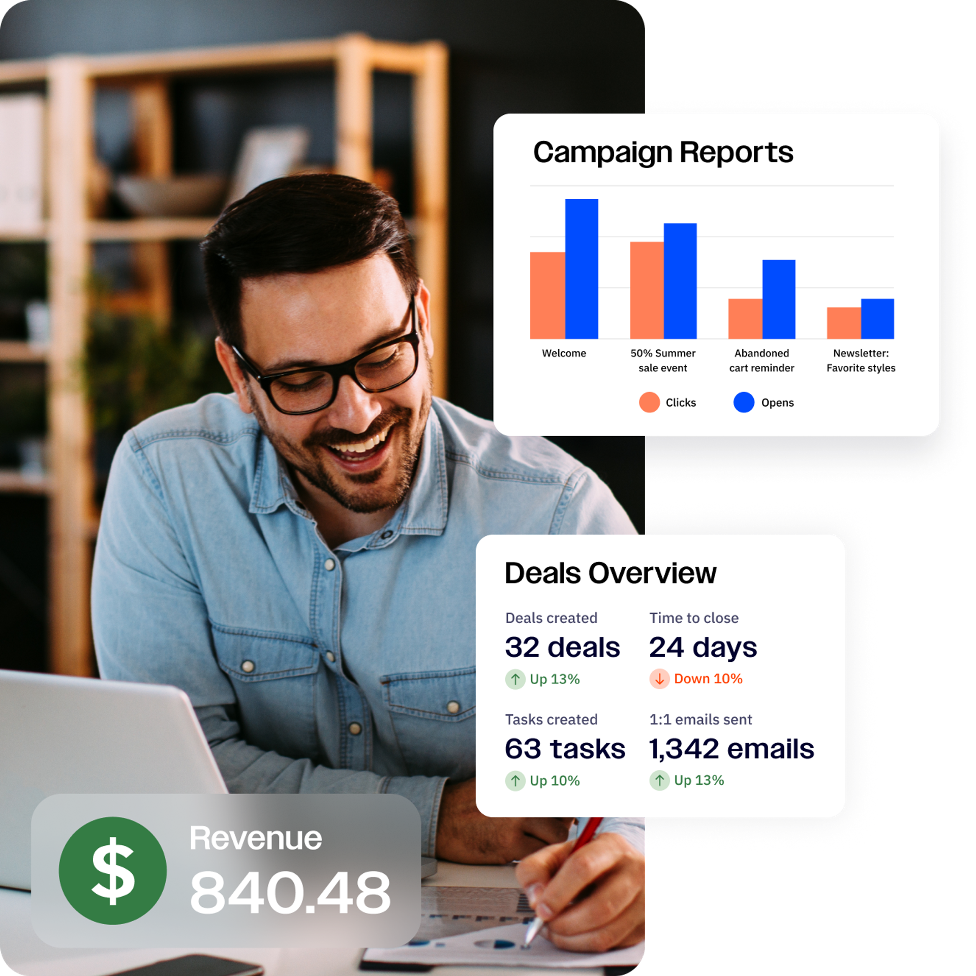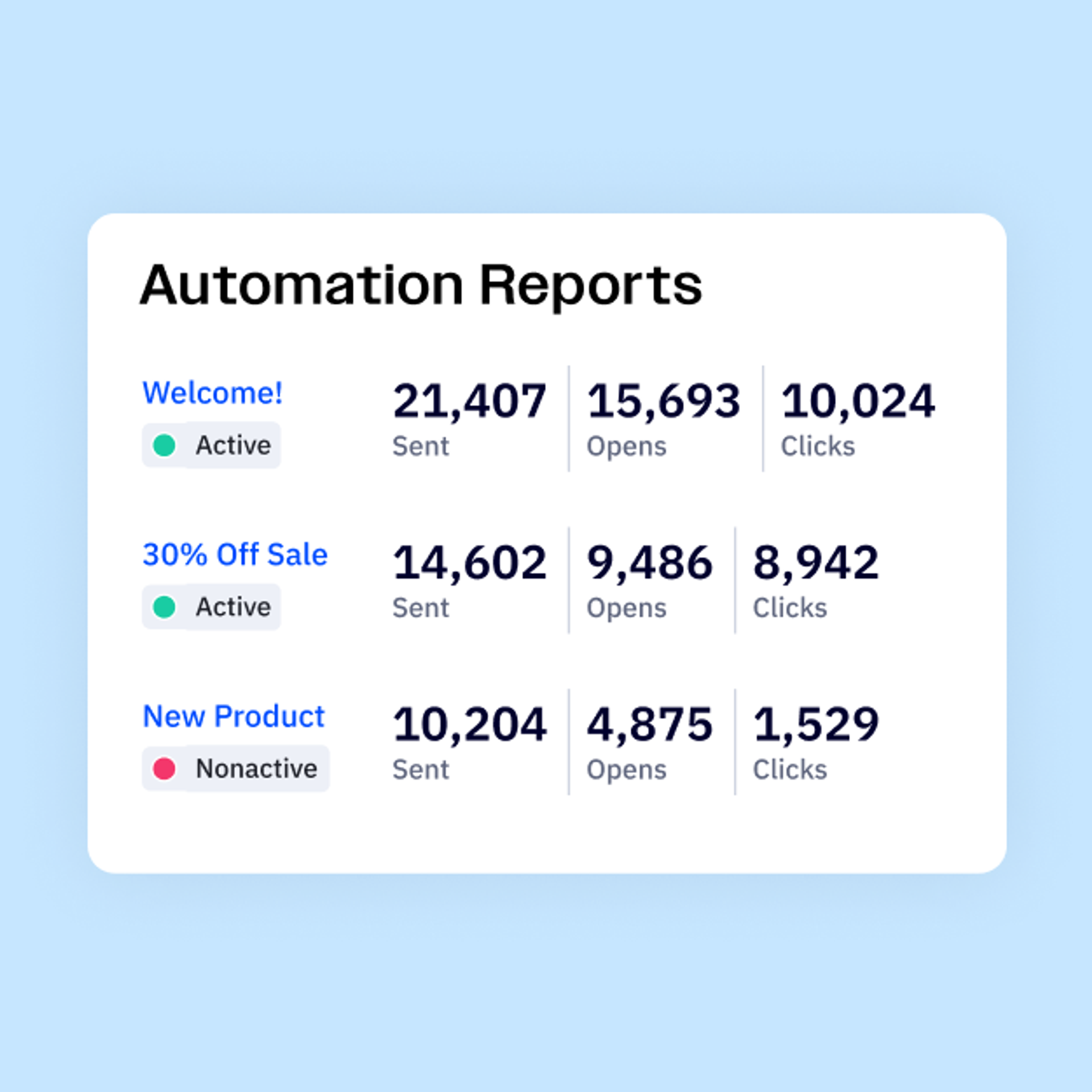 Bring data from across your campaigns into one place to see what resonates best with your contacts. With our comprehensive reporting features, you can create and customize dashboards to compare your most important metrics side-by-side.