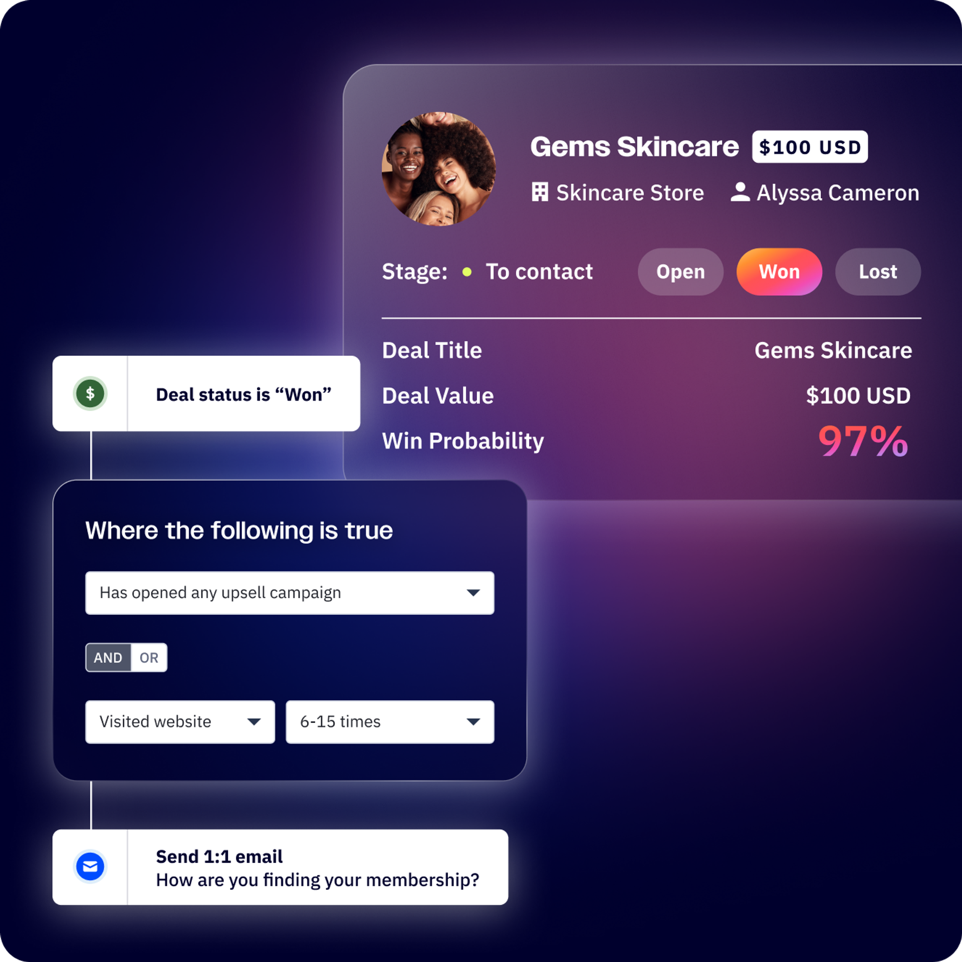 When an autonomous platform handles the busywork, you win back time to win more deals. ActiveCampaign’s CRM unifies your sales and marketing, giving you the insight you need to drive more revenue.