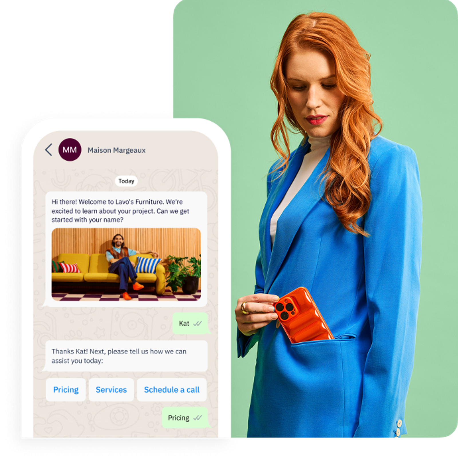 Make WhatsApp chats that automatically convert leads, guide new customers, answer questions, and handle repetitive work. Then pass the data to your email, marketing automation, and other tools so everything is in one place.