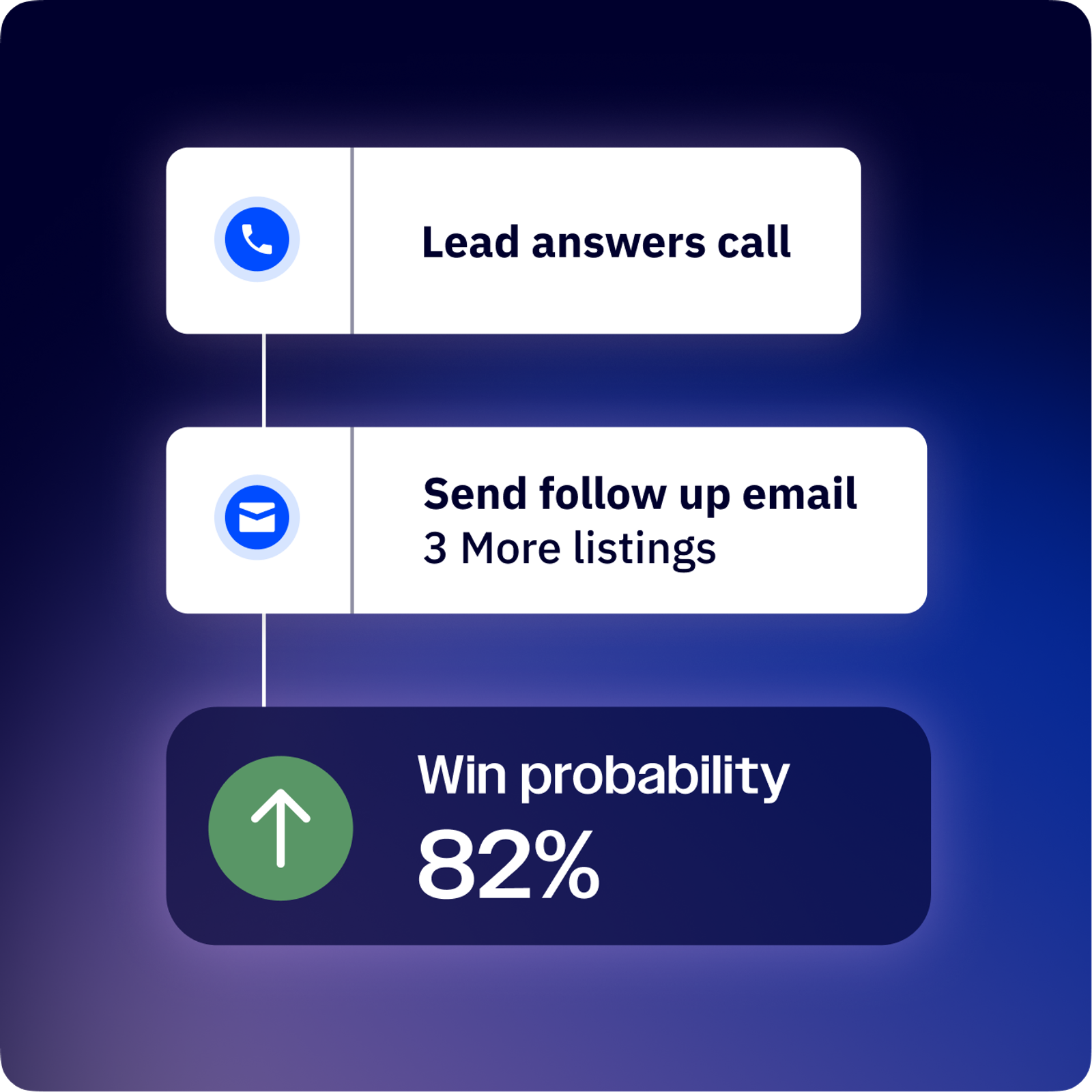 With Win Probability, you’ll get an exact percentage for every deal — like “73% likely to close.” The score will update whenever prospects engage, so you always have the right data to guide your next step.