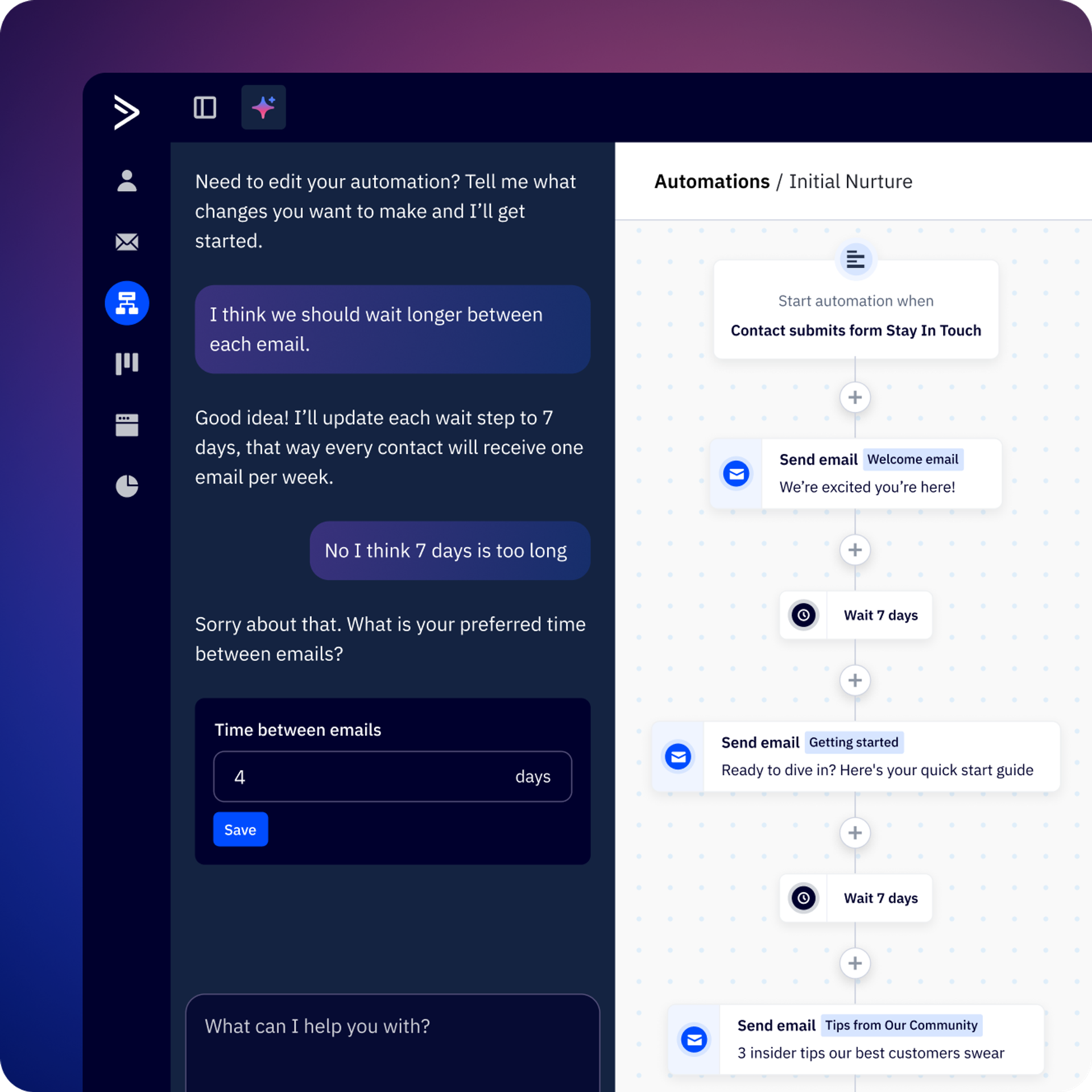 Built to work alongside you, the Active Intelligence sidebar knows the full context of what you're working on, be it analyzing campaign performance, building automations, or reviewing reports, and can provide contextual insights and recommendations without interrupting your flow.