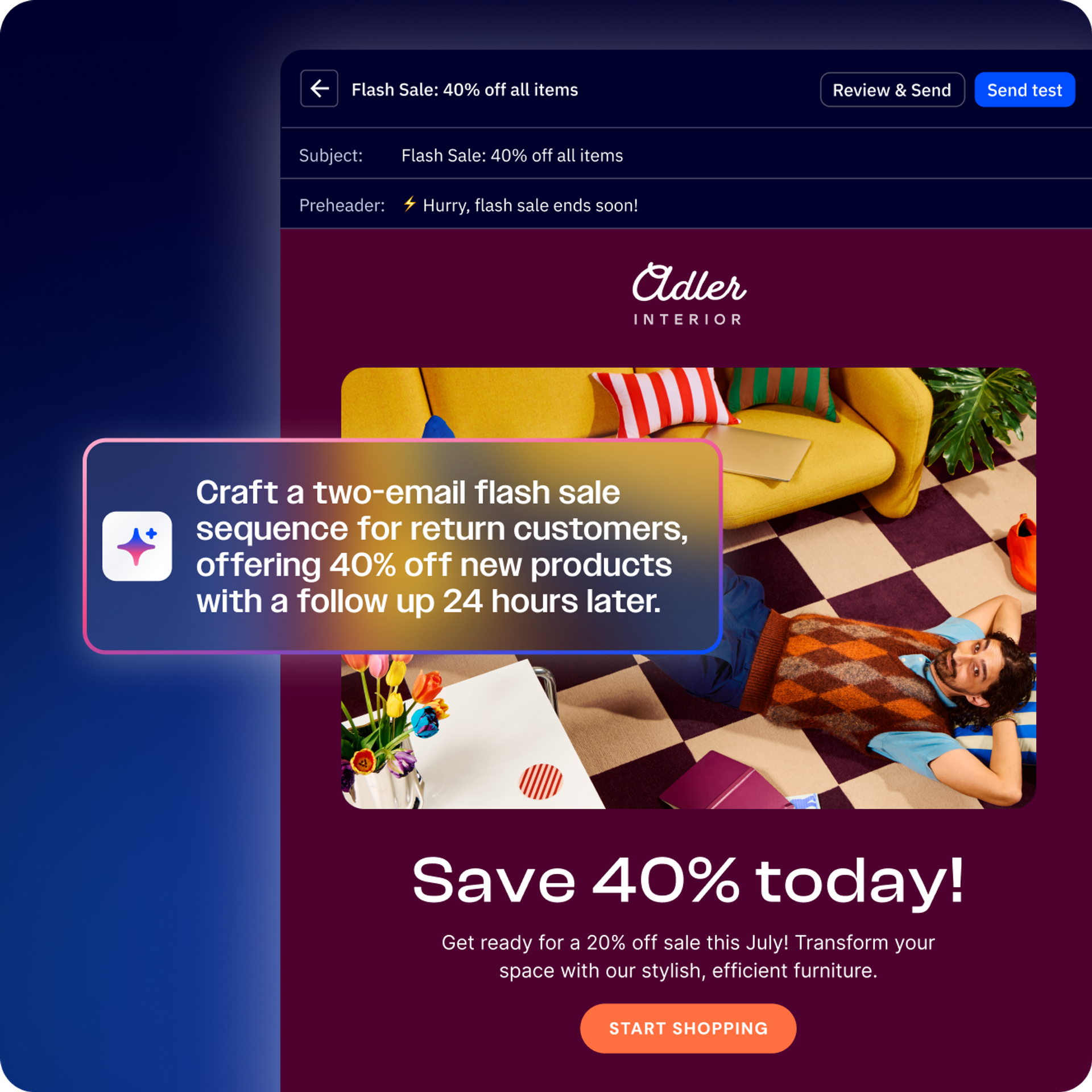 Create and optimize a full campaign from subject lines, copy, images, and more from a single idea to a launched campaign in record time.