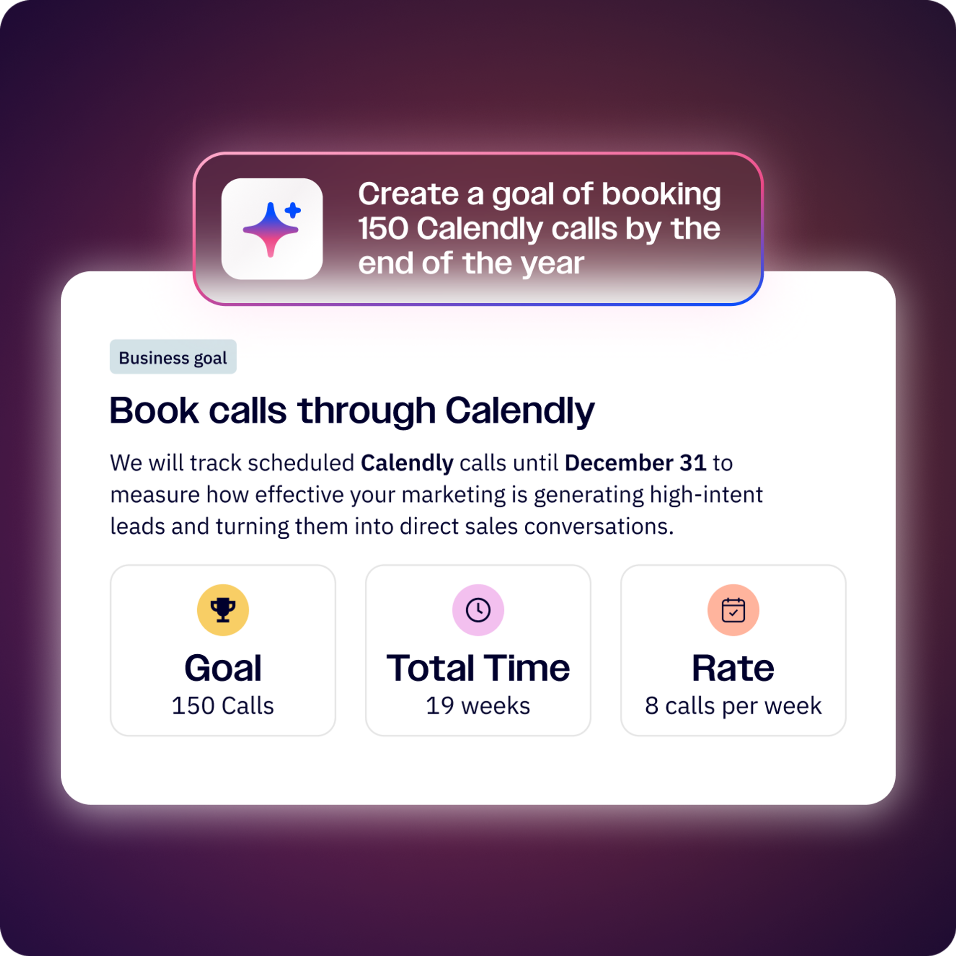 Turn “what if” into “what’s next”. Describe your objective in a prompt to create your measurable Business Goal. Watch Active Intelligence set up conversions and assets to lay out your path to success.