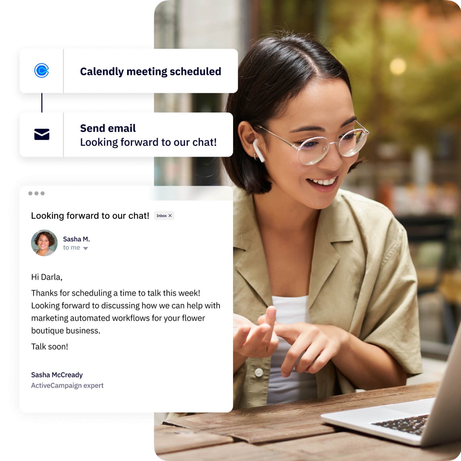 Our strategy sessions make it easy. We’ll connect you with an ActiveCampaign expert who’ll review your current strategy, goals, and business details. Then, they’ll help you develop an actionable plan to achieve the results you want.
