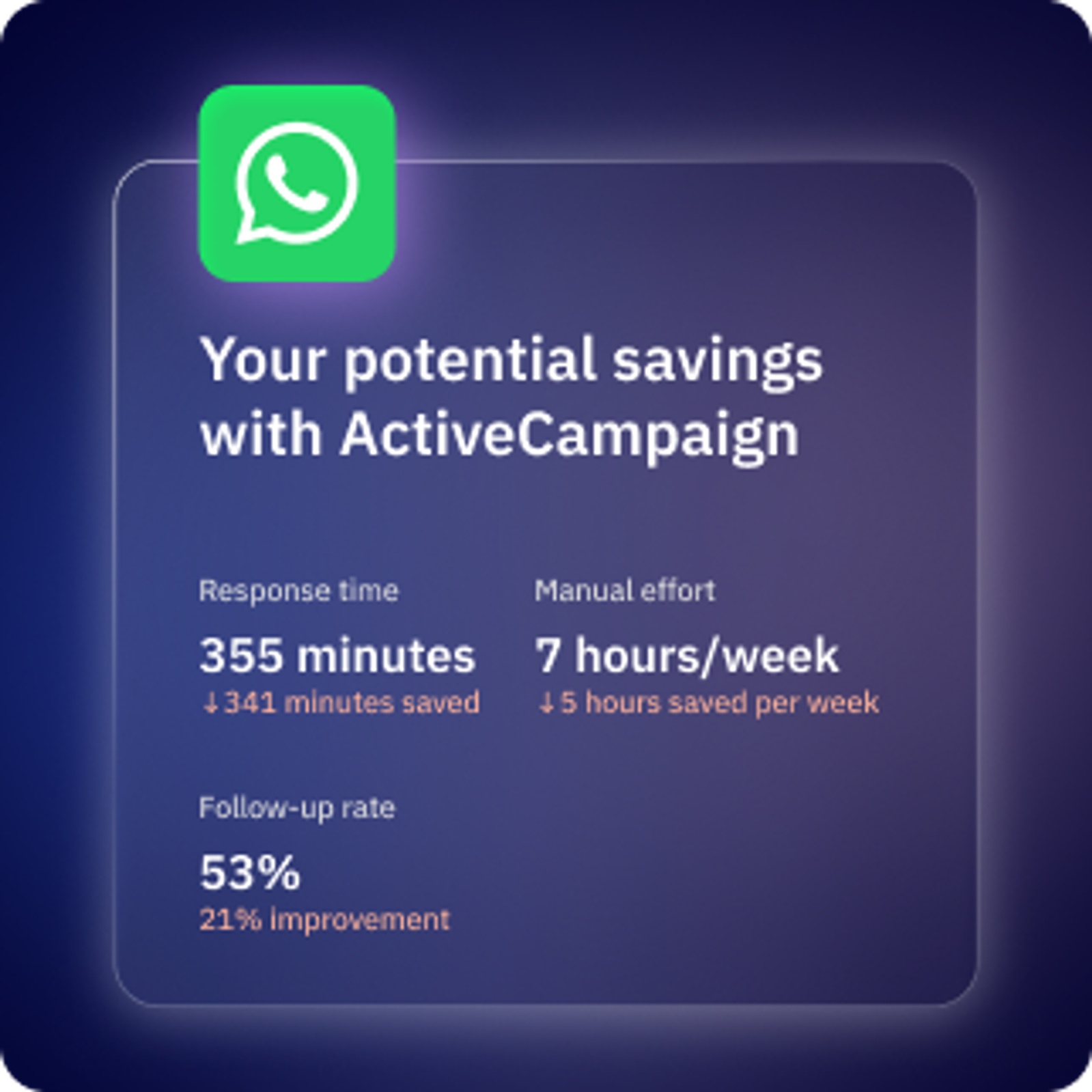 See how much time WhatsApp Messaging can save your business. Get personalized projections based on your current marketing metrics.
