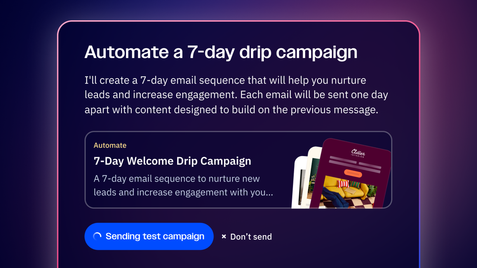 Instantly generate a full, on-brand campaign from a simple prompt.