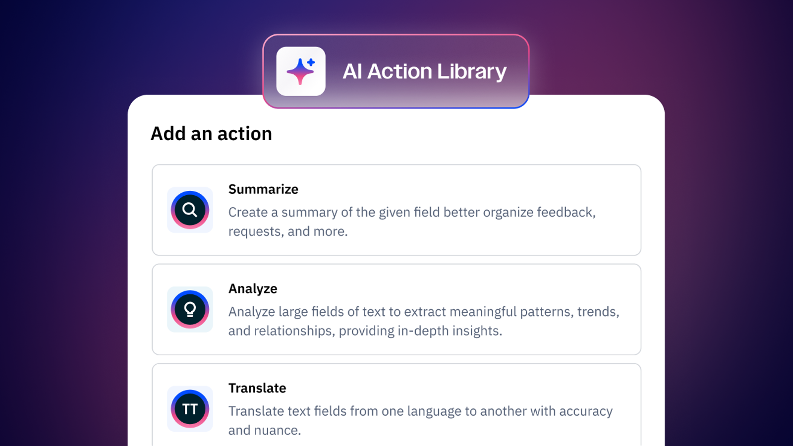 Add AI capabilities to any automation with actions you describe in plain language.