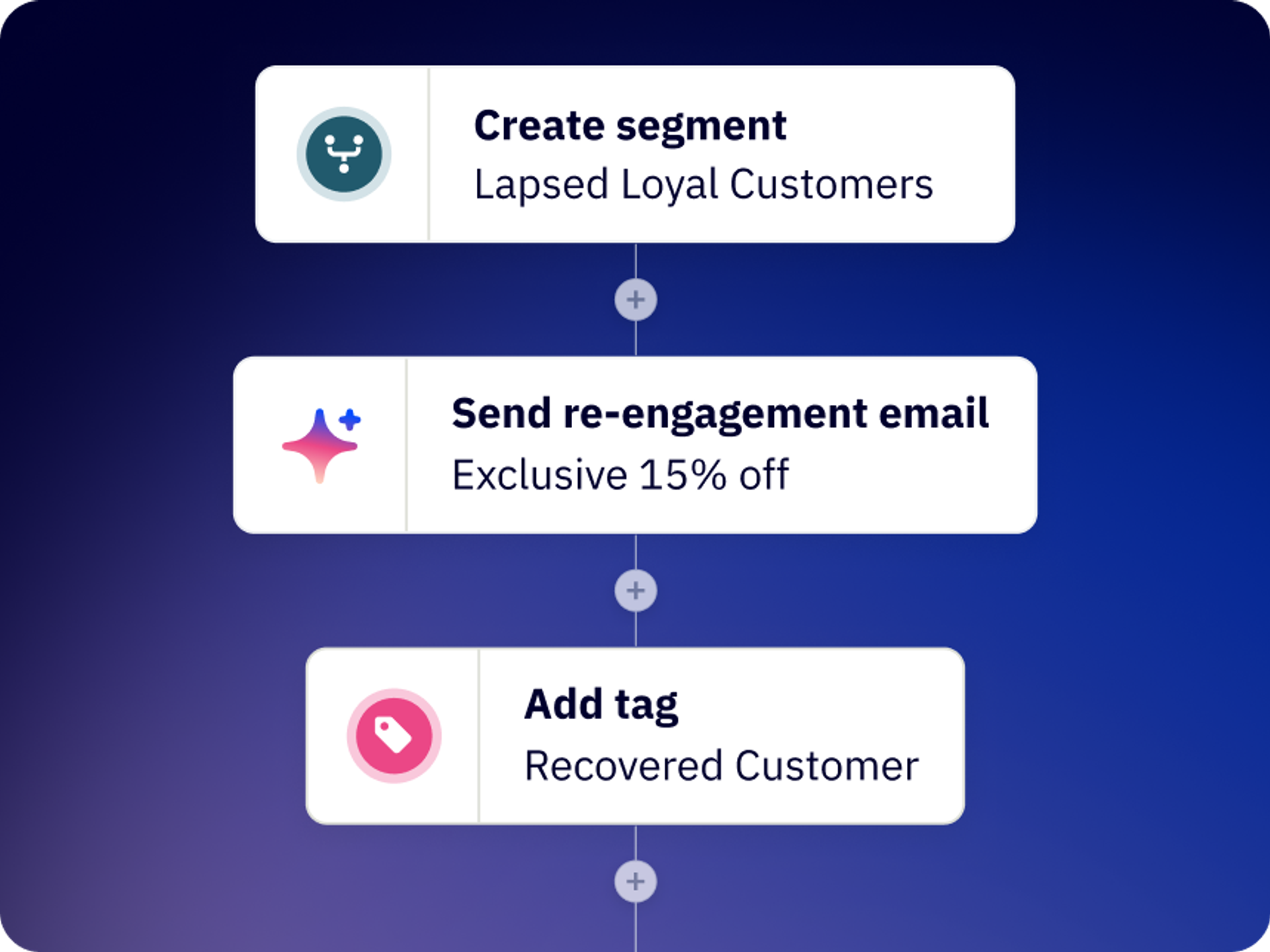 Automatically segment contacts by engagement trends, purchase frequency, and activity patterns—so you can re-engage at-risk customers and reward your loyalists.
