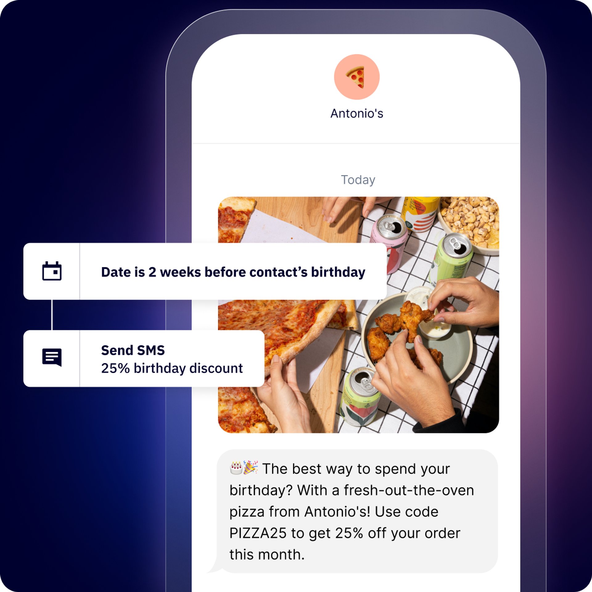 Take your campaigns to the next level with intelligent SMS marketing automation. Send promotions, follow ups, and reminders straight to your customers’ mobile devices.