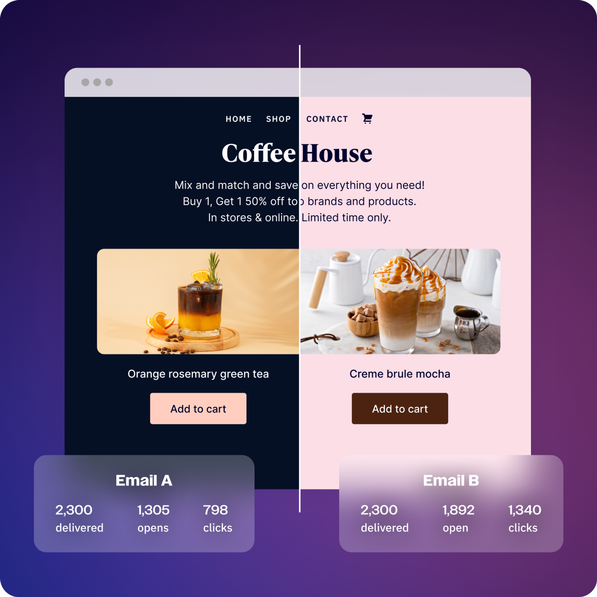 Our split testing goes a step further than A/B testing, letting you compare up to five different email elements to find out which truly resonates with your audience.