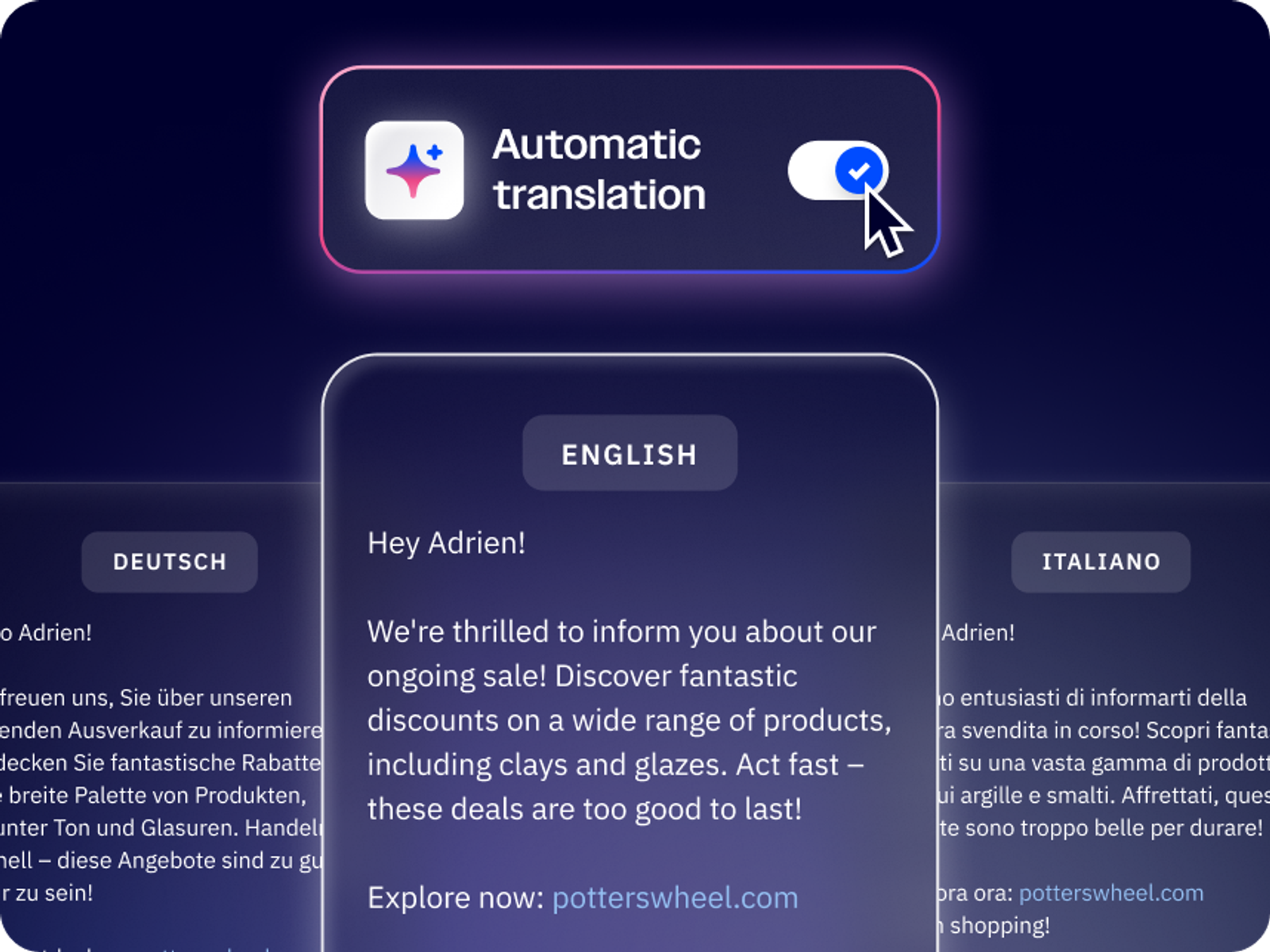 Translate your marketing content across your key languages with context-aware AI that preserves your brand voice, tone, and cultural nuances.