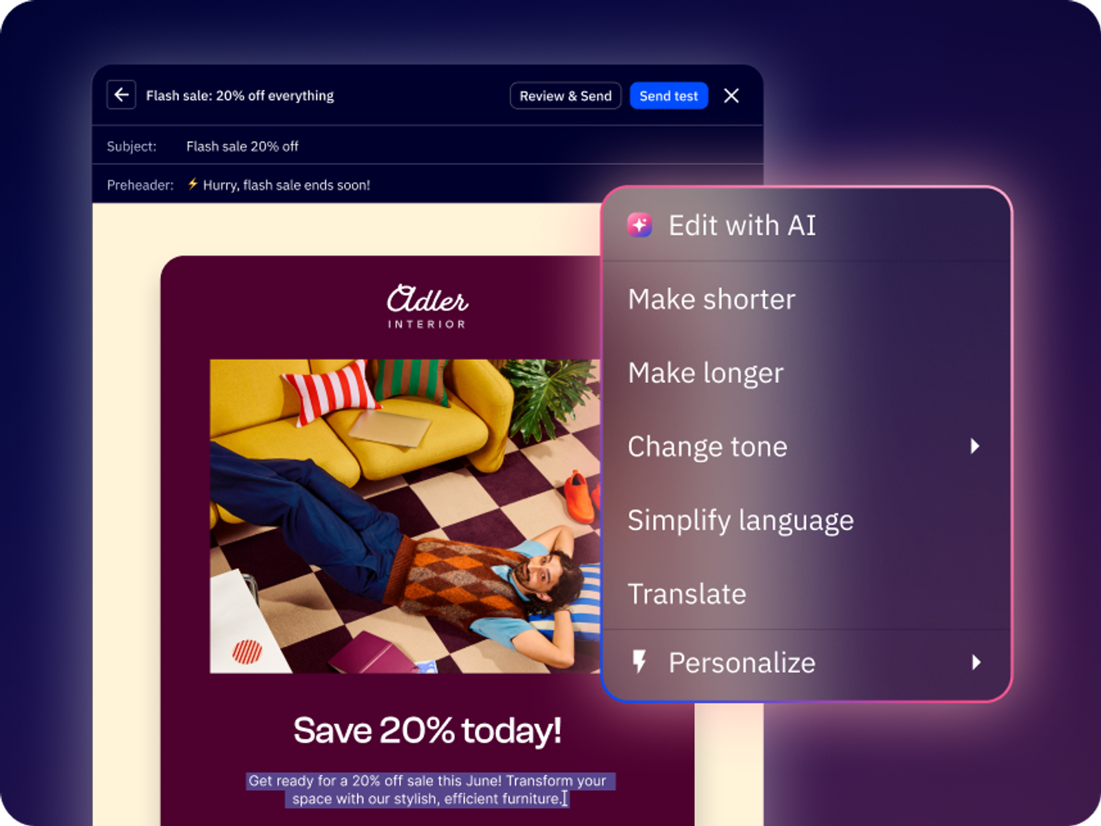 Describe what you want in plain language, and your AI agent brings it to life. It combines the speed of automation with your creative direction still in control. You get personalized campaigns faster that are ready to edit, refine, and send.